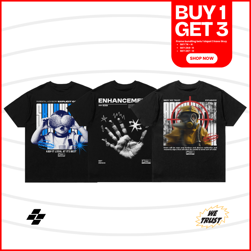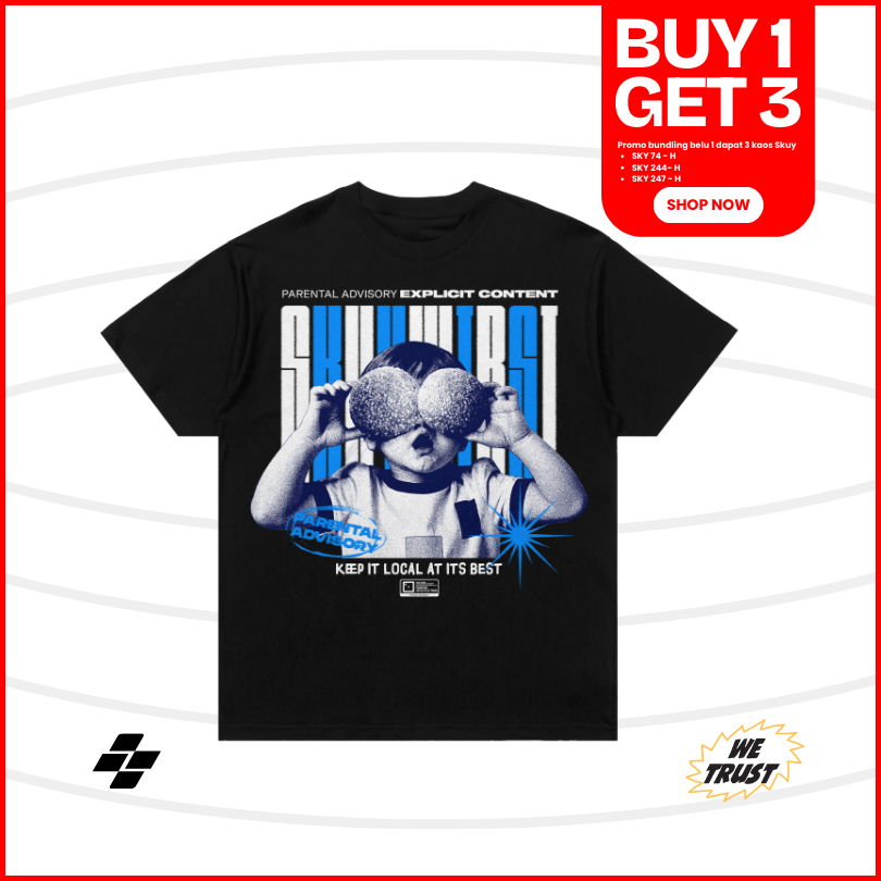Skuy Buy 1 Get 3 - Kaos Skuy Dewasa Lengan Pendek Baju Pria Bahan Cotton Combed 24s Kerah Bulat Parental Advisory Sky290