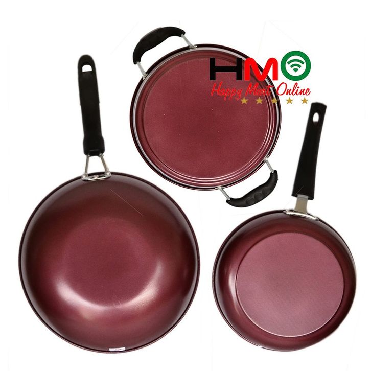 Panci Set Anti Lengket GSF-2429 Set 4 Pcs Panci Telflon + Tutup Kaca + Alat Masak Penggorengan Anti Lengket