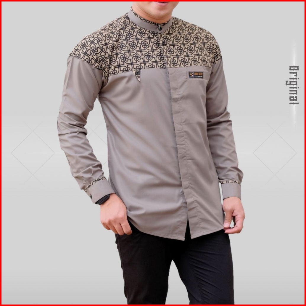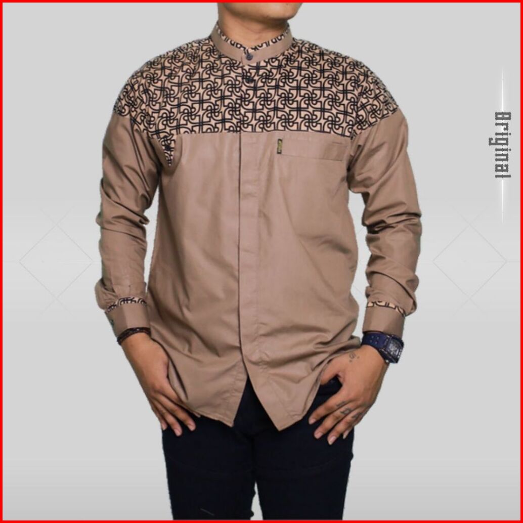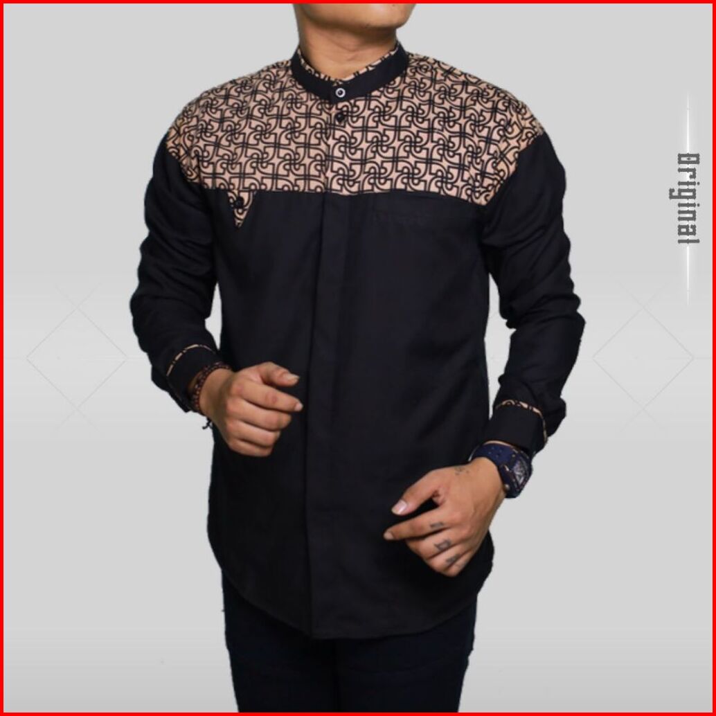 Baju Koko - Koko Pria Lengan Panjang Kombinasi Batik Bahan Katun Toyobo Premium Ukuran M L Xl Xxl