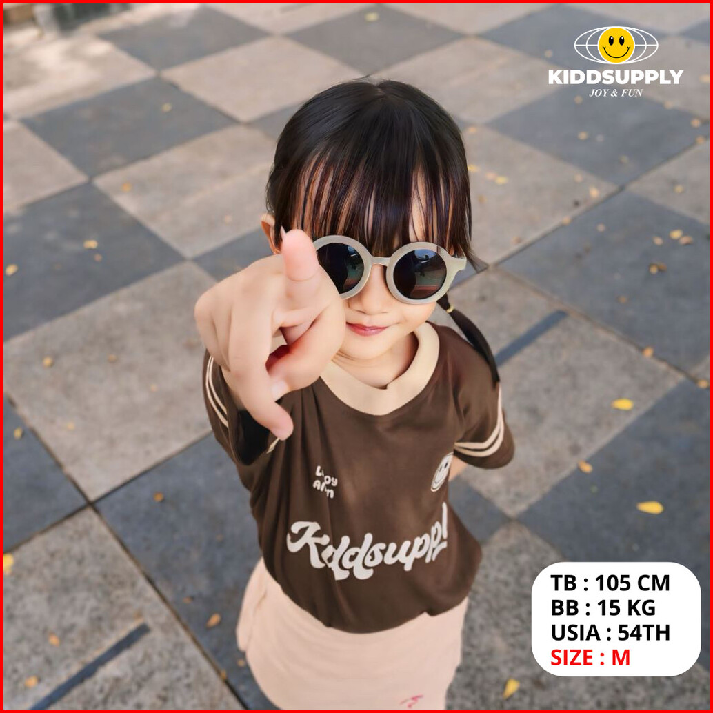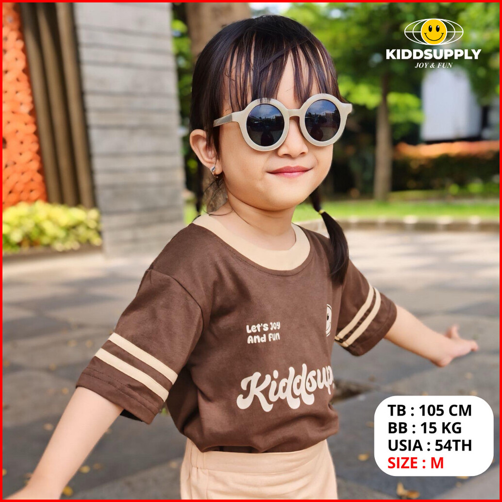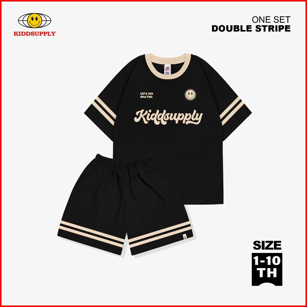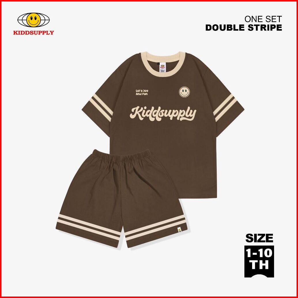 Kiddsupply Kids Tshirt Oneset Double Stripe Joy Dark Brown Dark Army L Kaos Regular Anak Unisex Kdts-ds-strip002