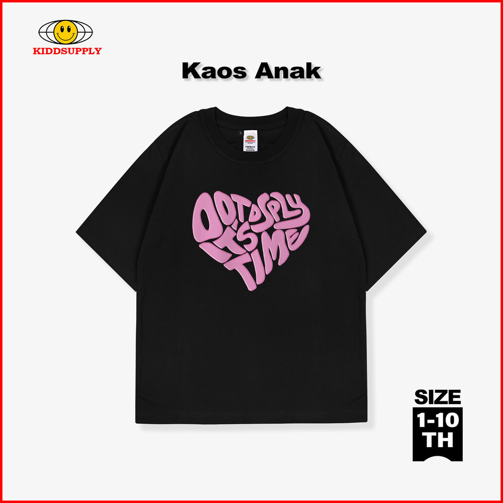 Kiddsupply Kids Tshirt Pink Heart Black White L Kaos Anak Unisex Tskd029