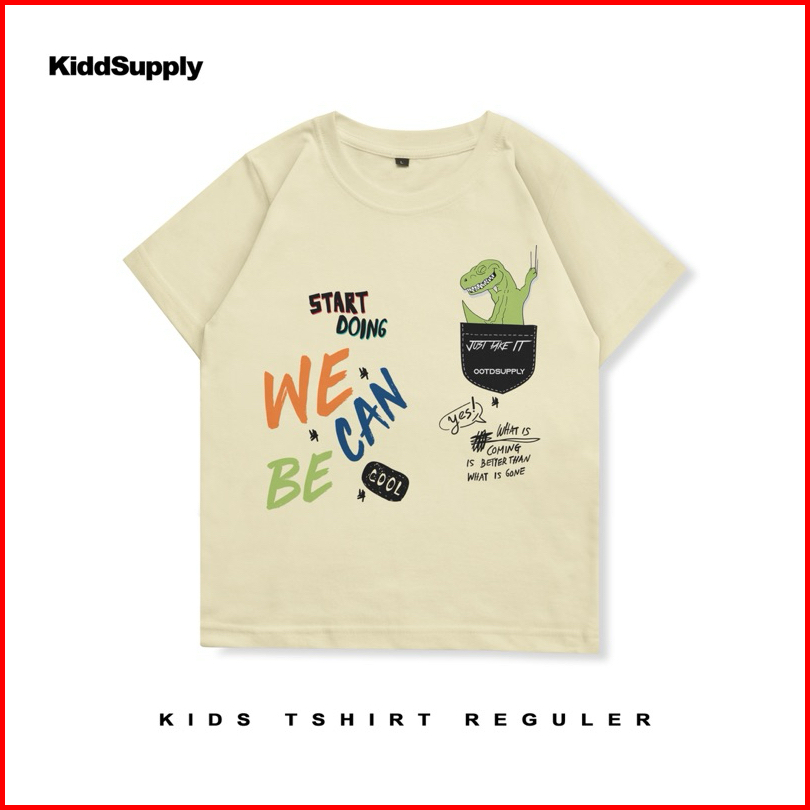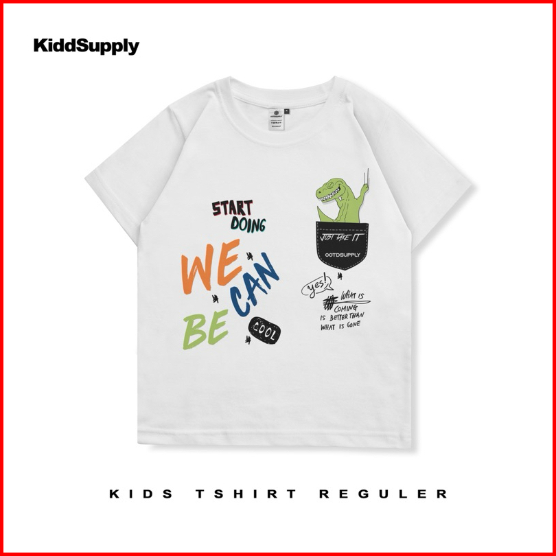 Kiddsupply Kids Tshirt T-rex White Cream L Kaos Anak Unisex Tskd012
