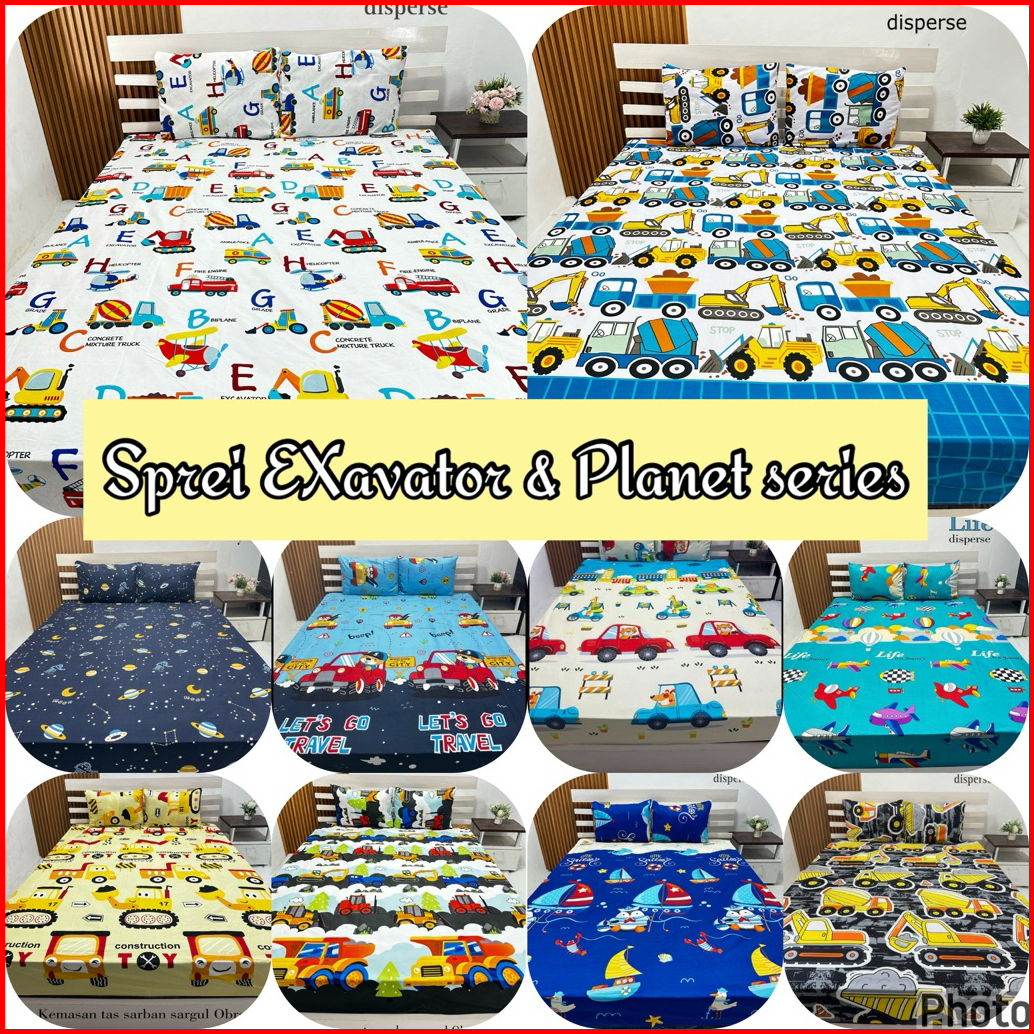 Sprei Size 120 160 180 Motif Exavator Tayo Planet Antariksa Transportasi Anak Cowok