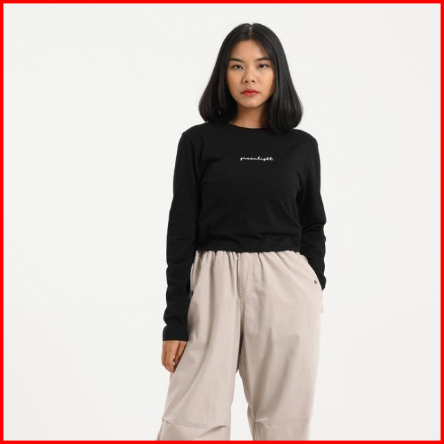 Greenlight Kaos Wanita Lengan Panjang Body Fit Katun Crop Top Chikari Hp-c211124
