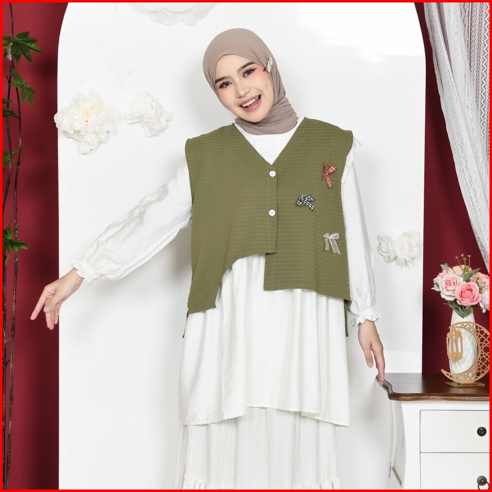 Mybamus X Purwakembar Button Vest With Ribbon Outer Rompi Wanita Kancing Coquette Ala Korea