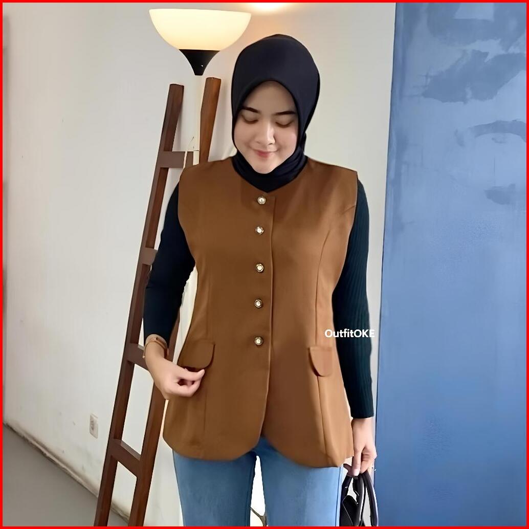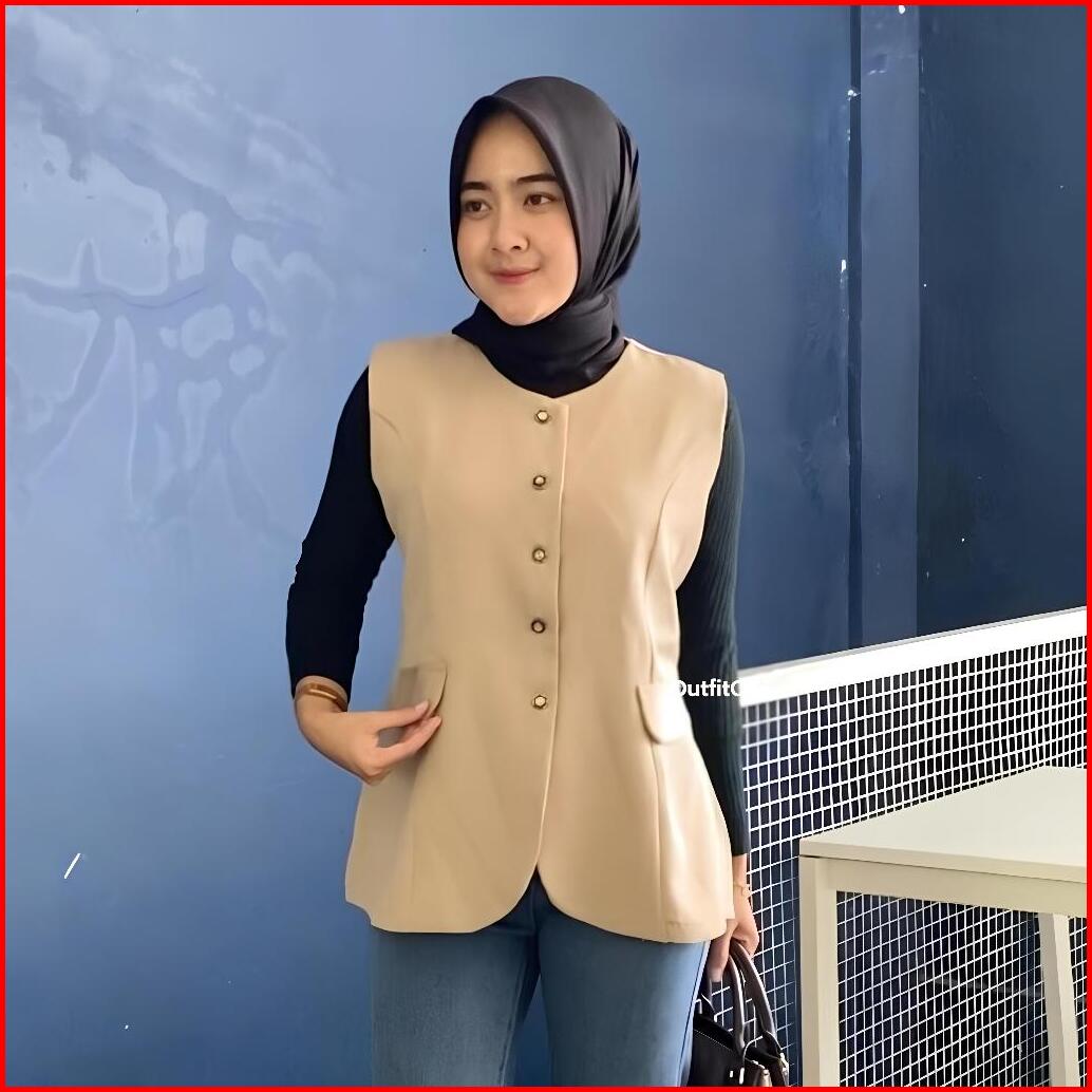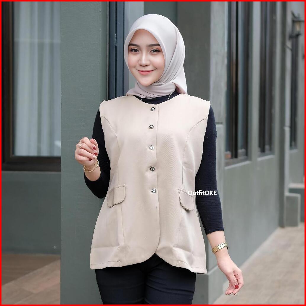 Bianca Vest Outer Rompi Blazer Wanita - Sleeveless Top - Cardigan Outerwear Basic Korean Style