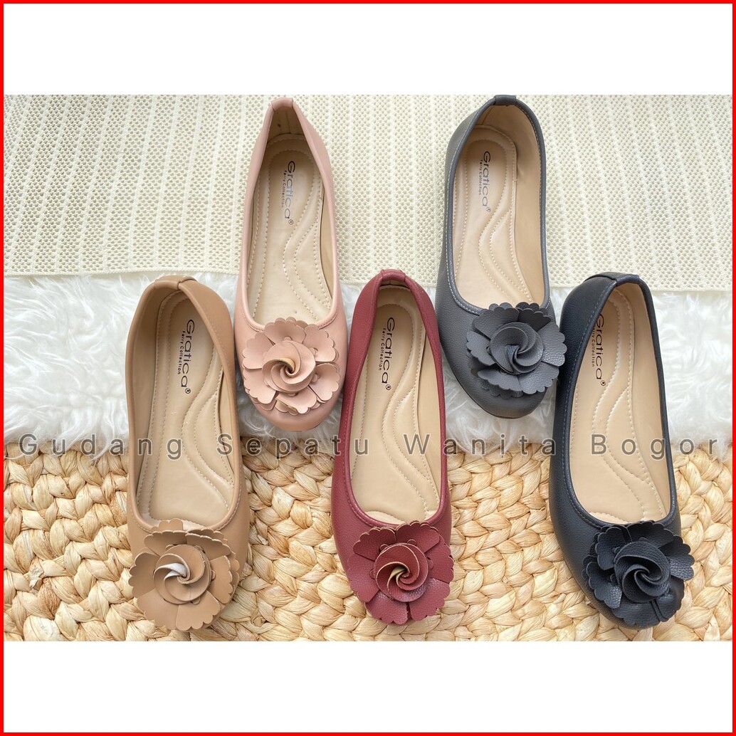 Gratica Sepatu Kerja Kantoran Santai Wanita Flat Shoes Bunga Balerina Ap 081