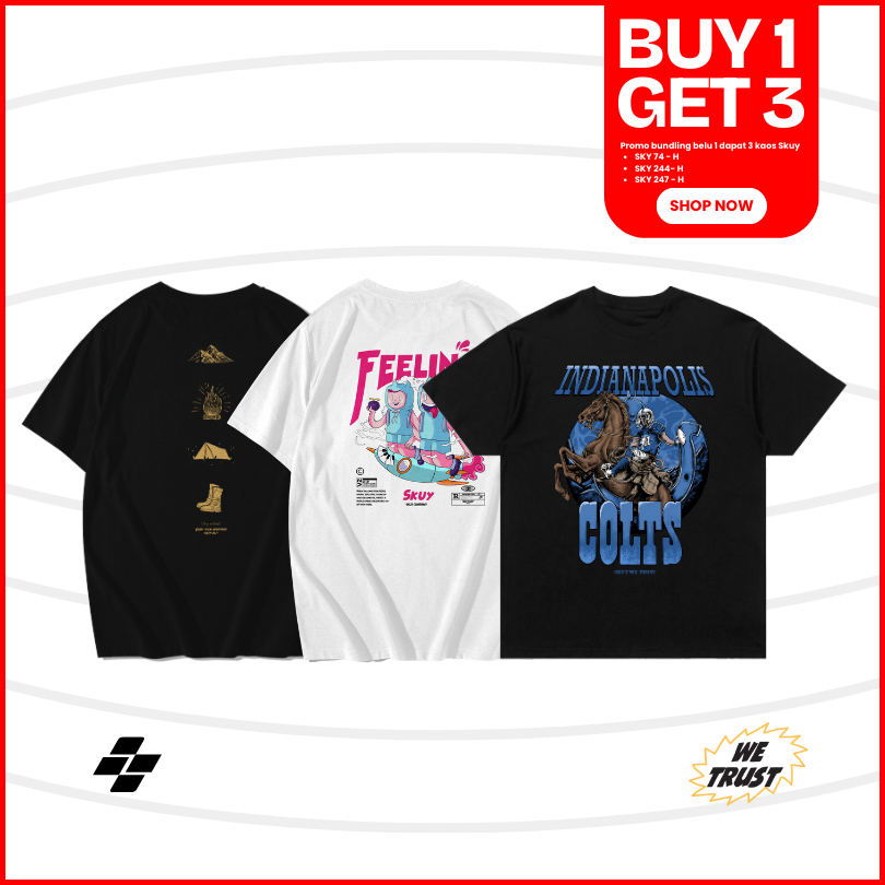 Skuy Buy 1 Get 3 - Kaos Skuy Dewasa Lengan Pendek Baju Pria Bahan Cotton Combed 24s Kerah Bulat Adventure Sky179 Feeling