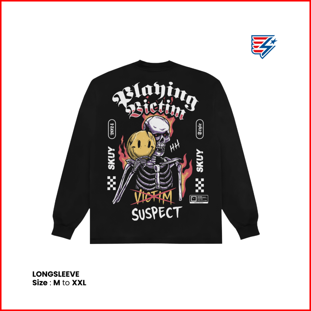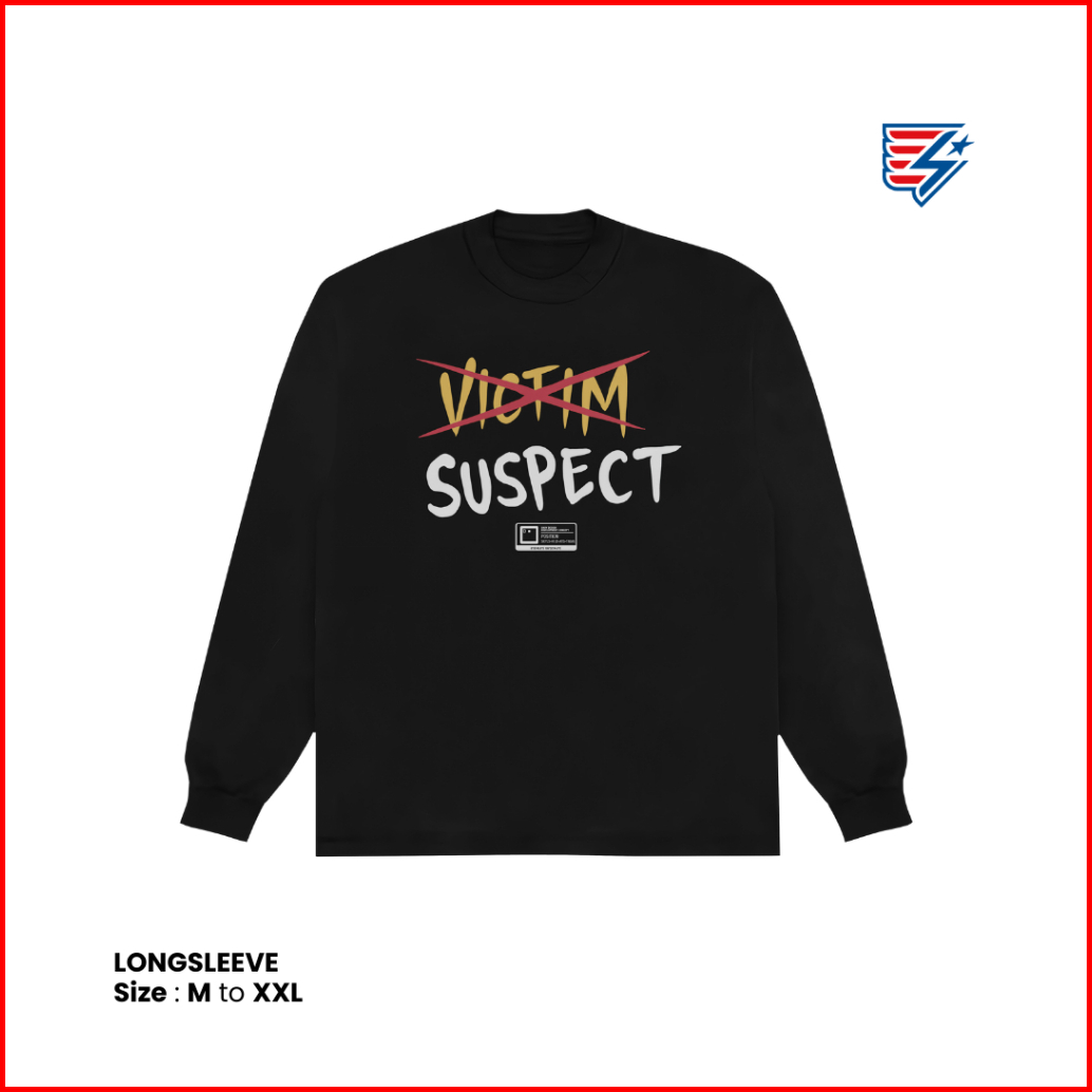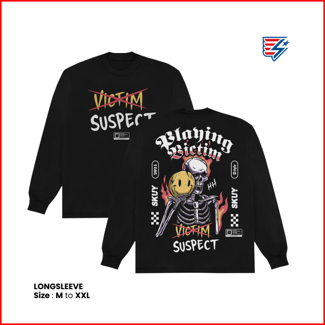 Skuy Longsleeve Kaos Dewasa Unisex Lengan Panjang Warna Hitam Bahan Cotton Combed 24s Suspect Skyls14
