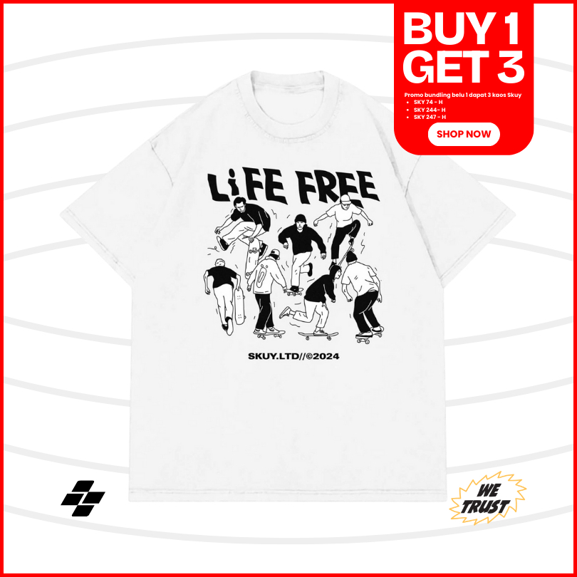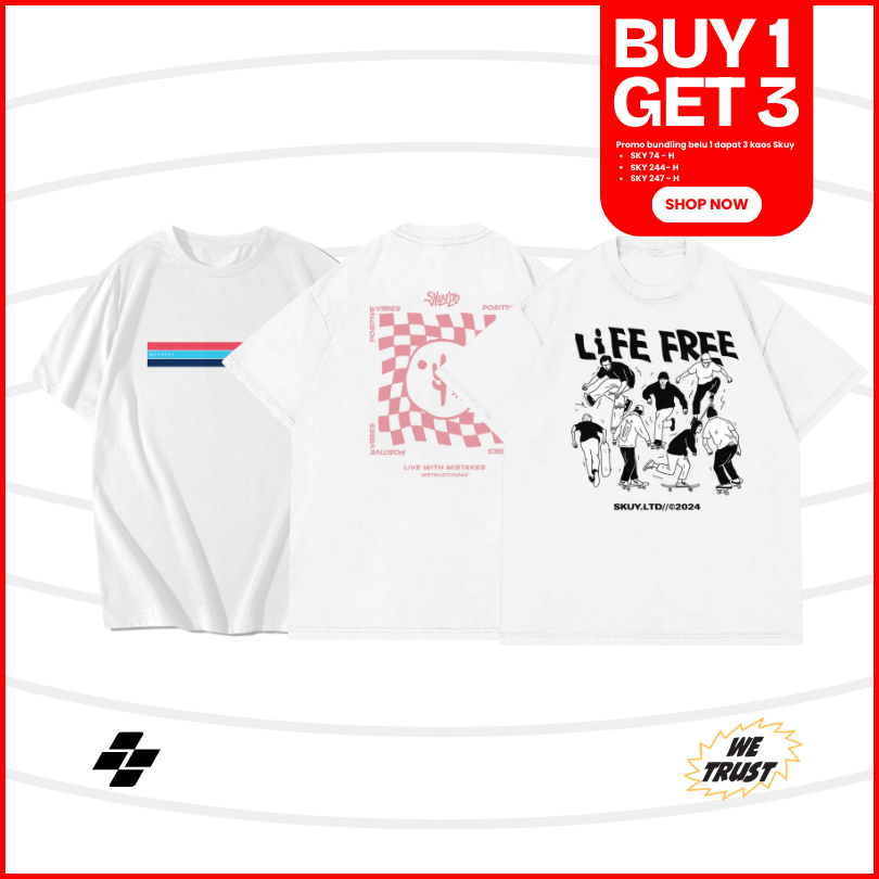 Skuy Buy 1 Get 3 - Kaos Skuy Dewasa Warna Putih Lengan Pendek Baju Pria Bahan Katun Combed 24s Skuy Sky220 With Mistakes
