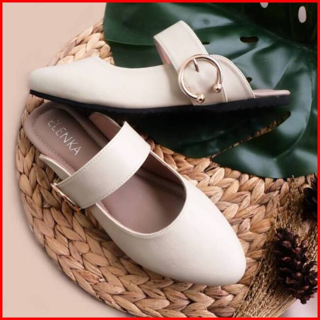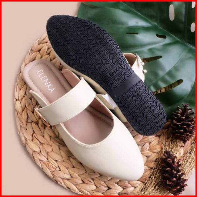 Flatshoes Jumbo Wanita Bonna Cream Elenka Size 41 42 43 44 45 Sepatu Mules Bigsize Kaki Lebar