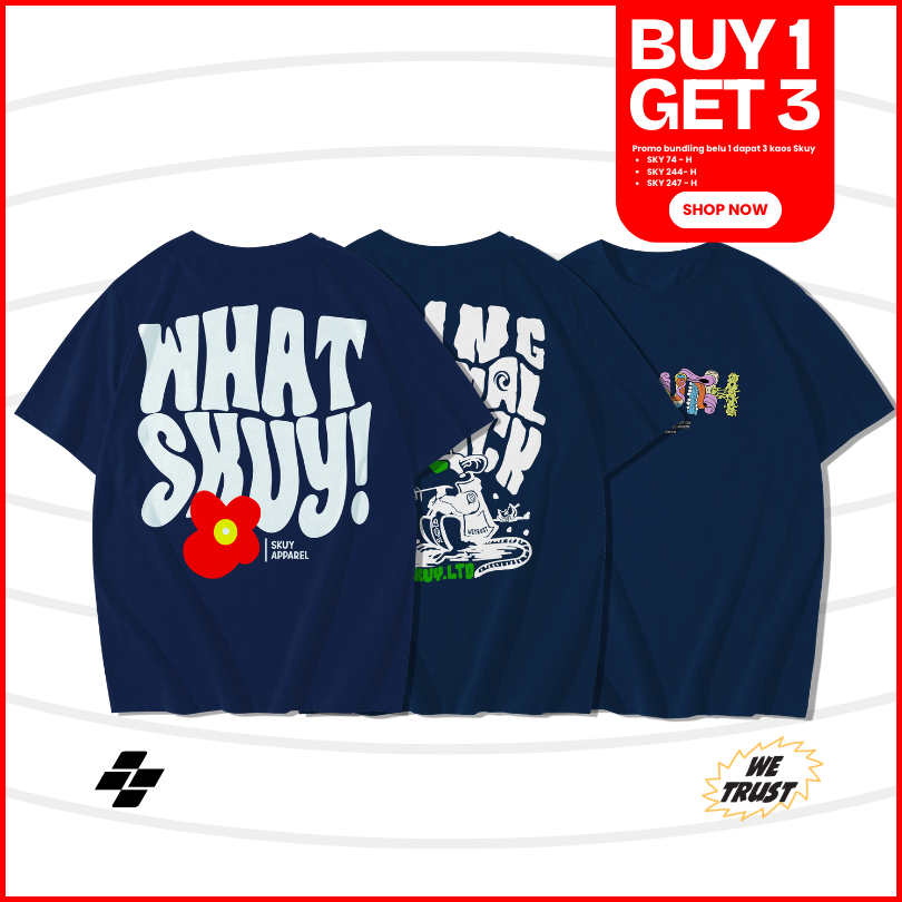 Skuy Buy 1 Get 3 - Kaos Skuy Dewasa Warna Navy Lengan Pendek Baju Pria Bahan Katun Combed 24s Kerah Bulat What Skuy Sky2