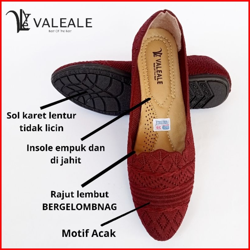 Sepatu Flat Wanita Rajut Import Gelombang Valeale Model Larisa Original Motif Rajut Acak Sol Karet Trendy Tidak Licin Ny