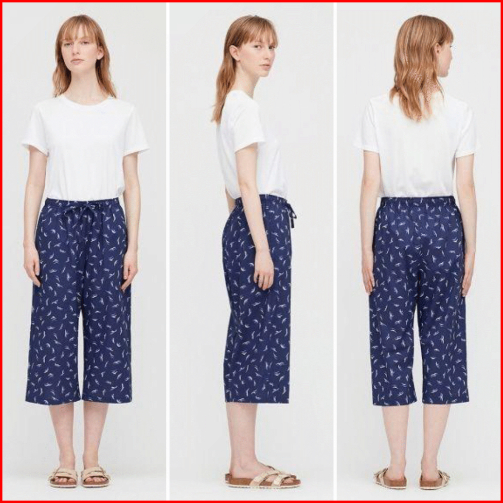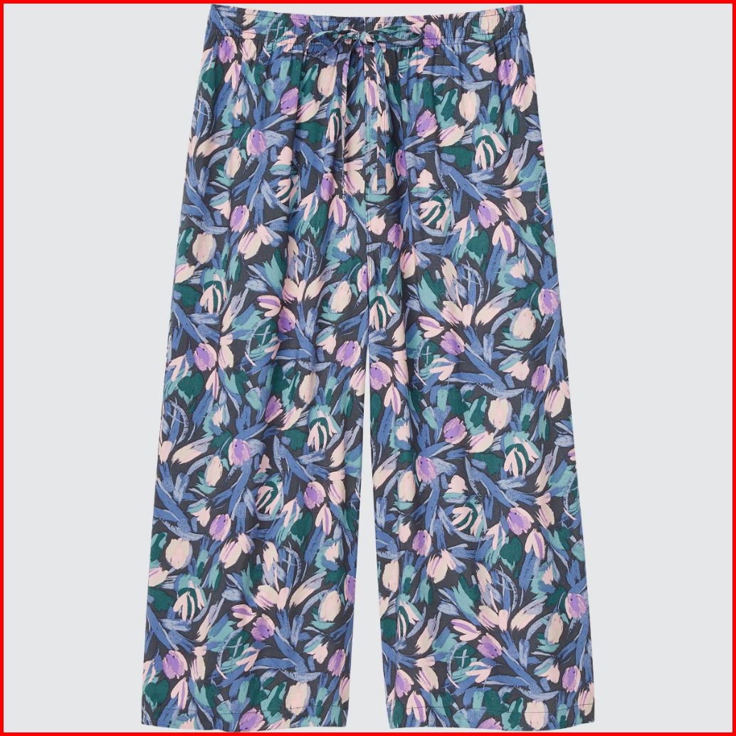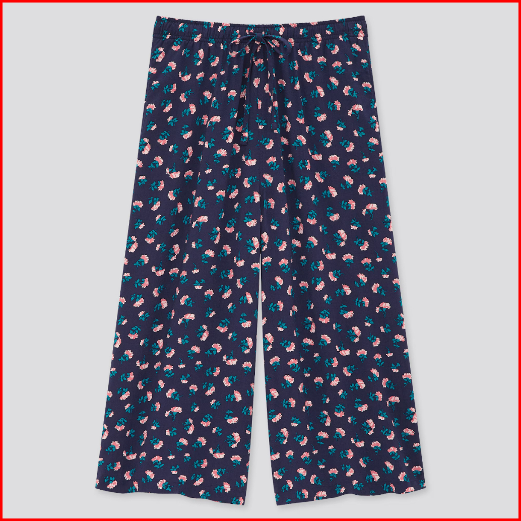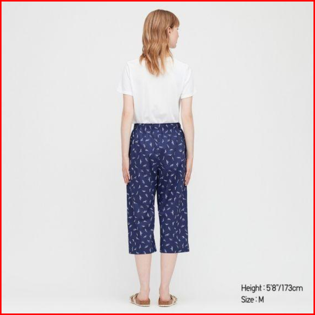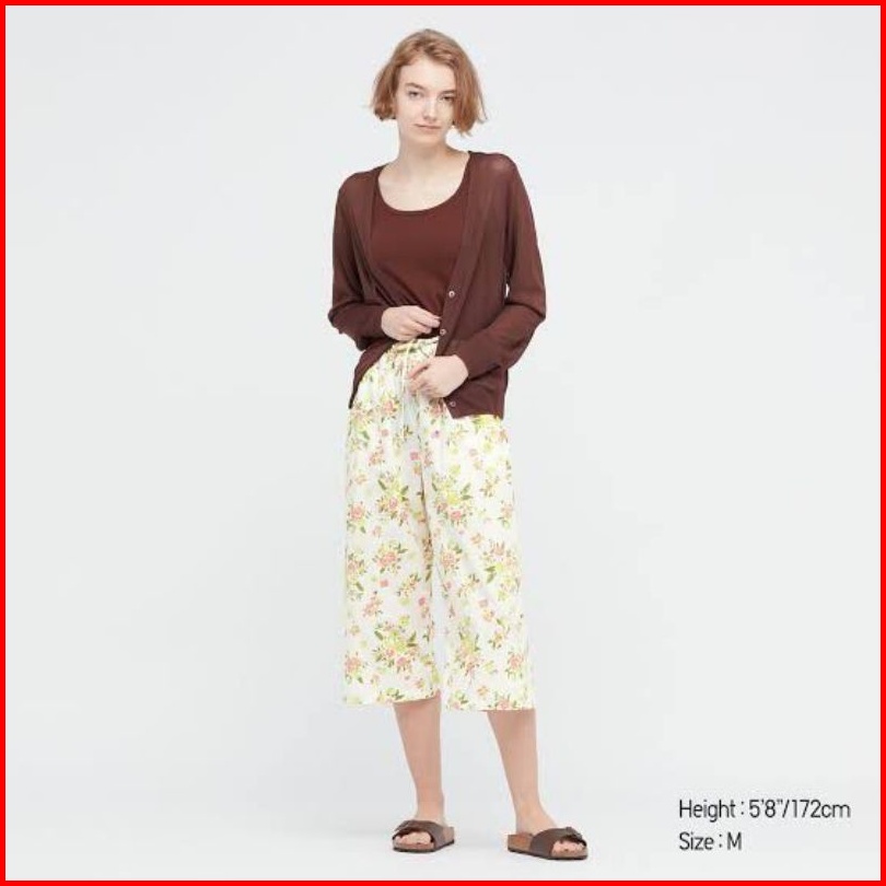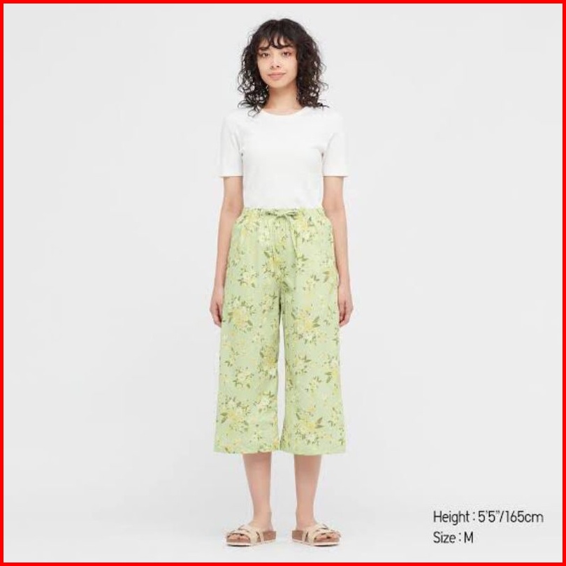 Uniqlo Celana Kulot Wanita Rayon Motif Pendek 3 4 Original
