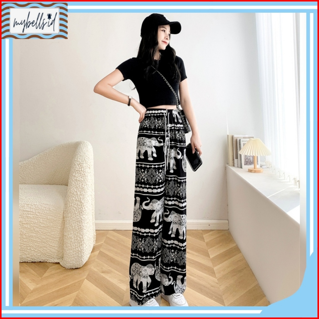 Mb Cpg458 Celana Panjang Wanita Kulot Motif Batik Salur Bahan Rayon