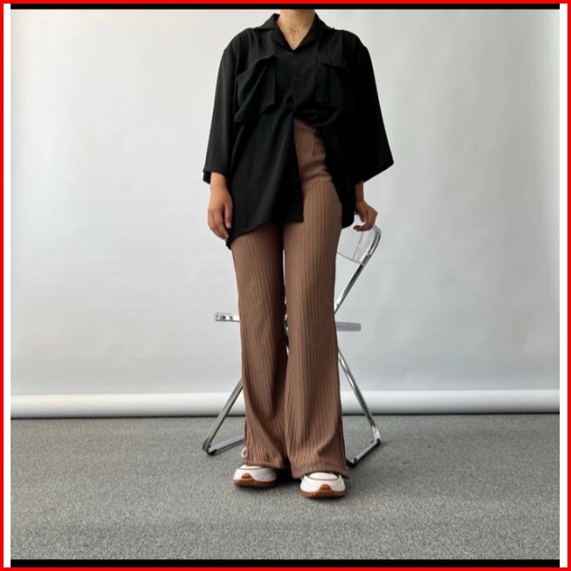 Flare Pants-celana Cutbray Knit Wanita Highwaist-kulot Cutbray Wanita Premium