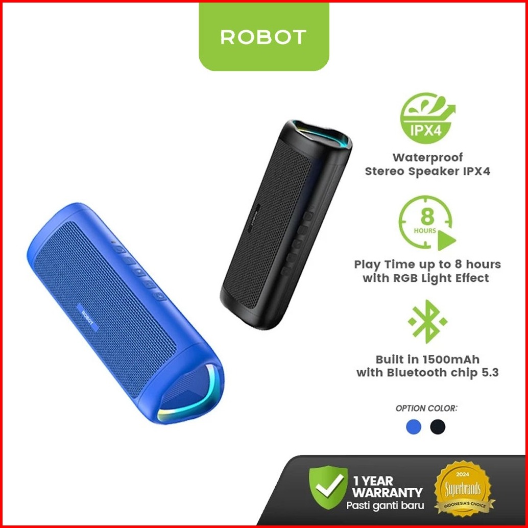 Robot Speaker Bluetooth Portable Double Bass 1500mah 10w Tahan Air Dengan Bluetooth 5.3 Ipx4 Waterproof Rgb Lightshow Rb