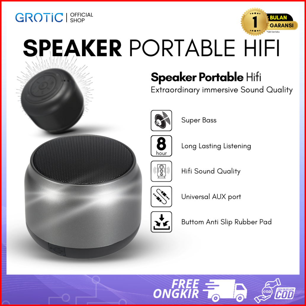 Grotic Speaker Bluetooth Portable Hifi Bass Wireless Stereo Mini
