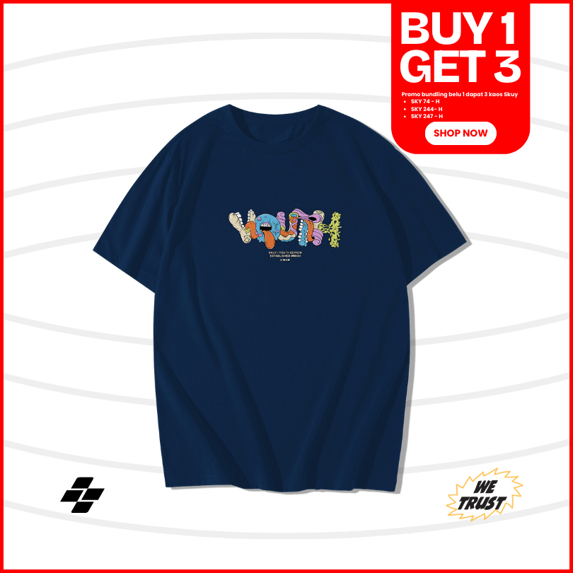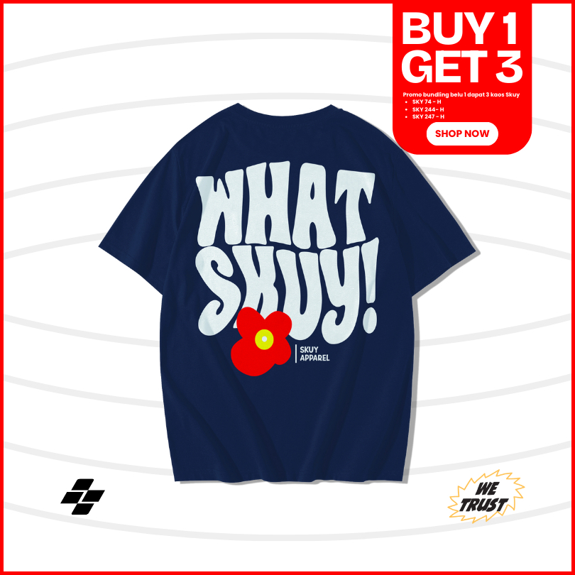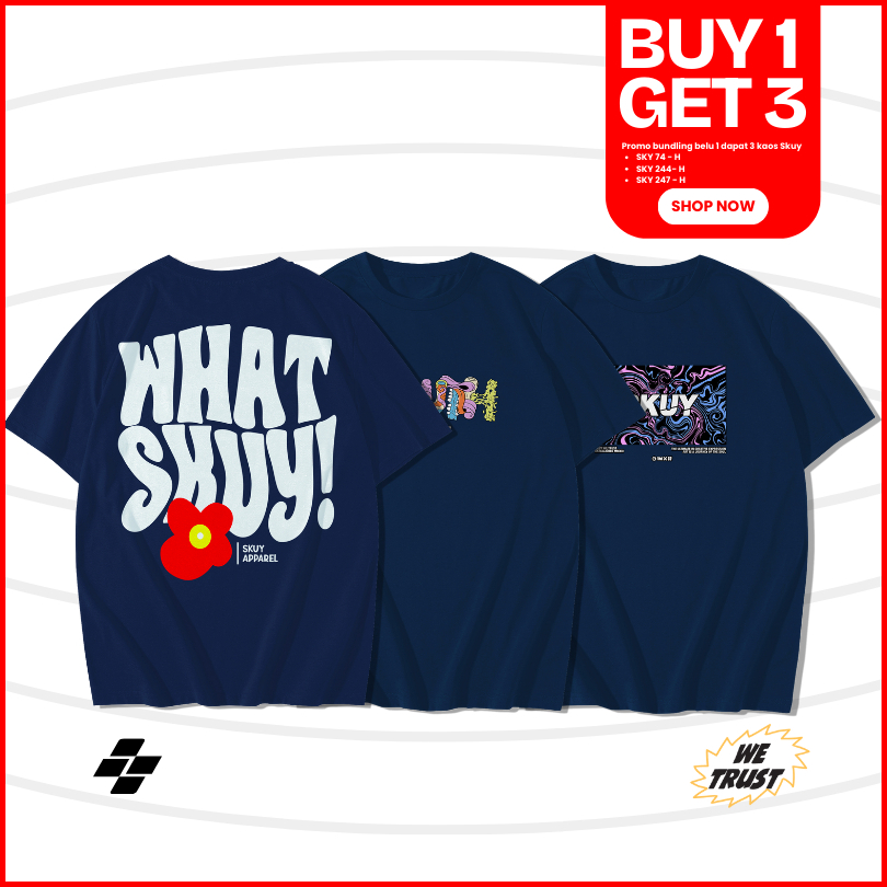 Skuy Buy 1 Get 3 - Kaos Skuy Dewasa Warna Navy Lengan Pendek Baju Pria Bahan Katun Combed 24s Kerah Bulat What Skuy Sky2