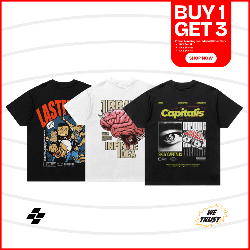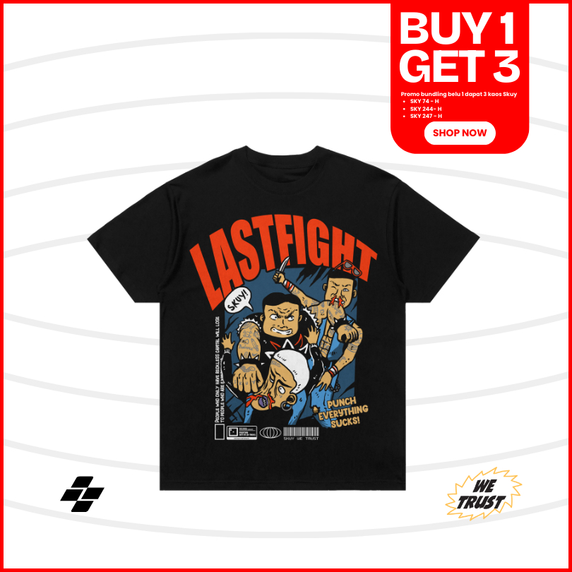 Skuy Buy 1 Get 3 - Kaos Skuy Dewasa Lengan Pendek Baju Pria Bahan Cotton Combed 24s Kerah Bulat Last Fight Sky294 1brain