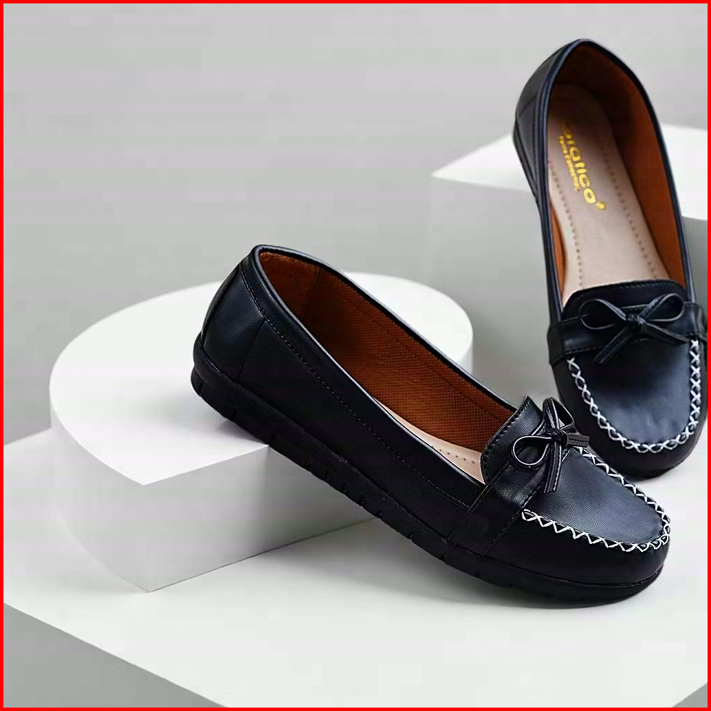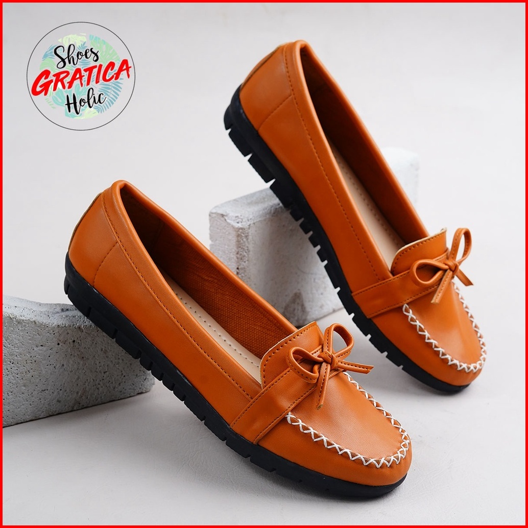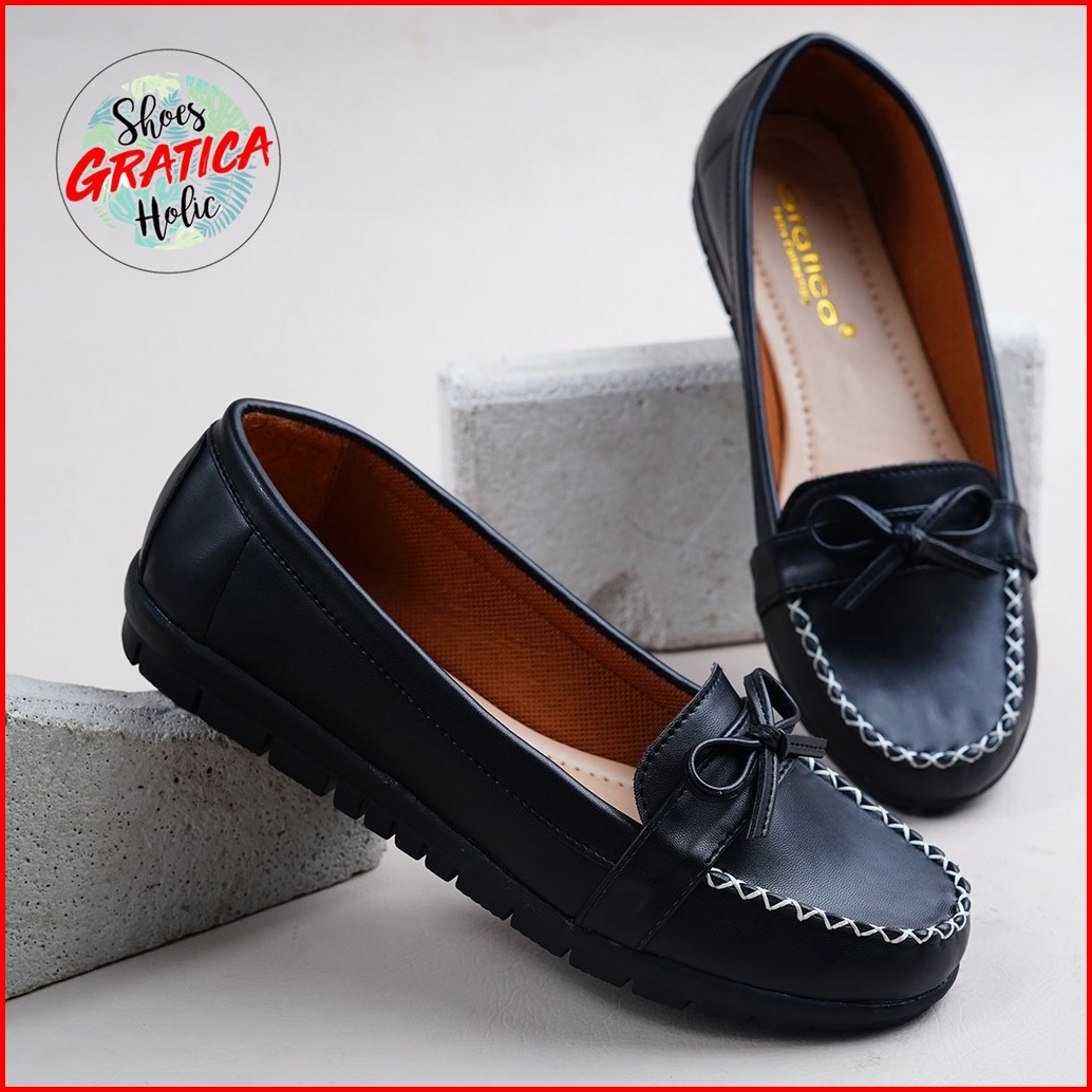 Flat Shoes Wanita Terbaru Rona Sintetis Hitam Tan Crem