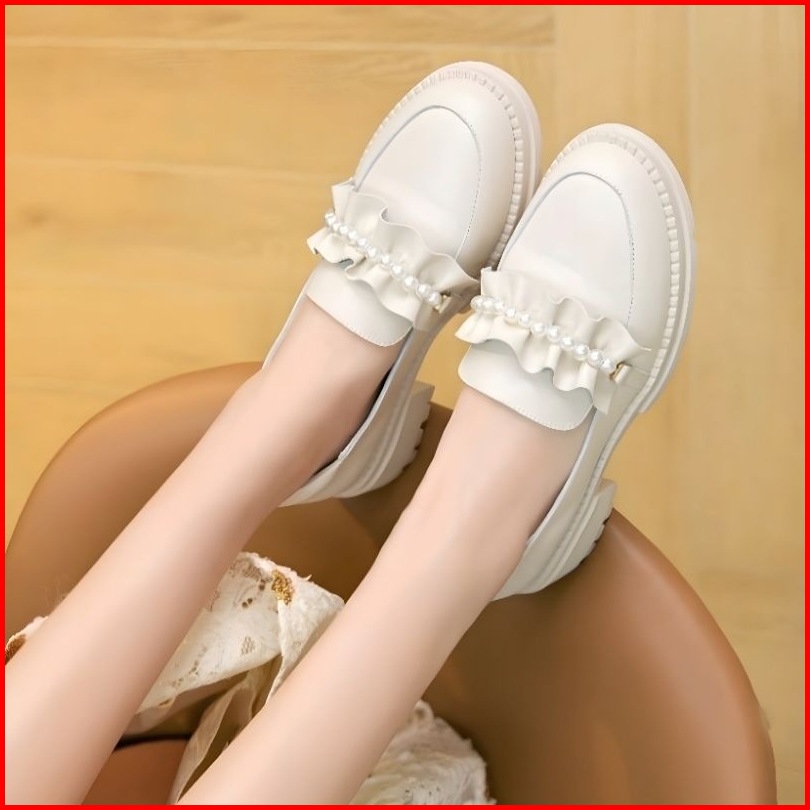 Flatform Shoes Wanita Lolita Mary Janes Mutiara Graceful