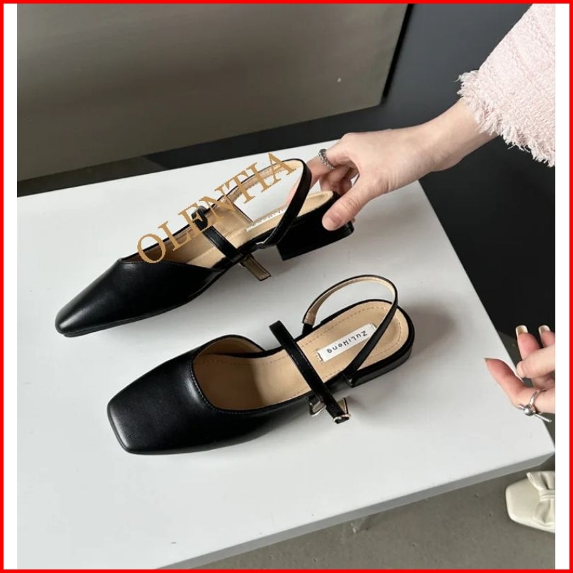 Sepatu Mules Wanita Hak 3cm Bahan Sintetis