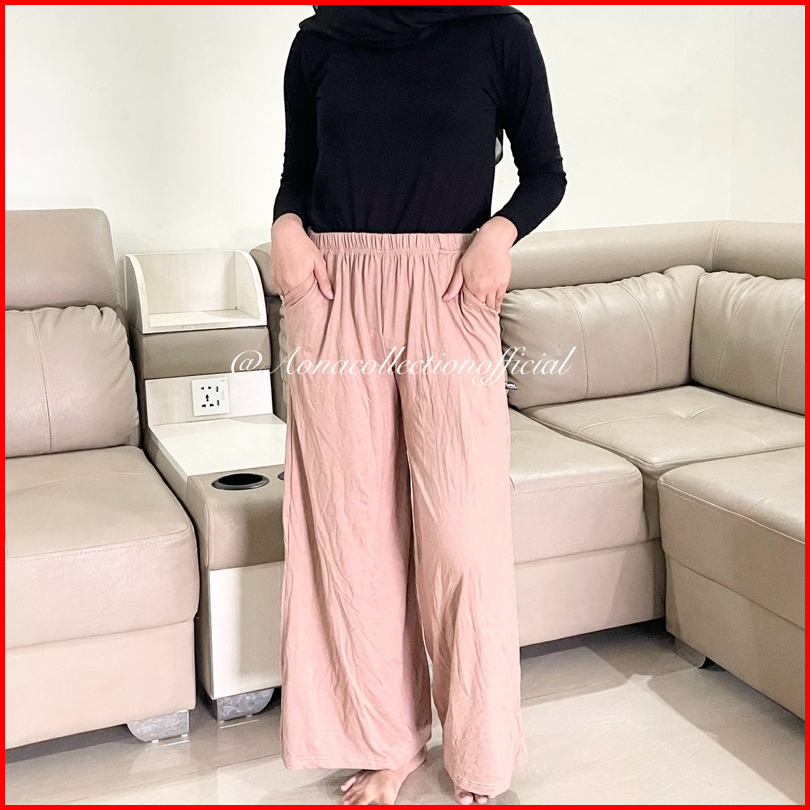 Lembut Kulot Spandek Rayon Celamis Adem By Aona - Celana Panjang Wanita Dengan Karet Pinggang Elastis Dan Saku Kanan Kir