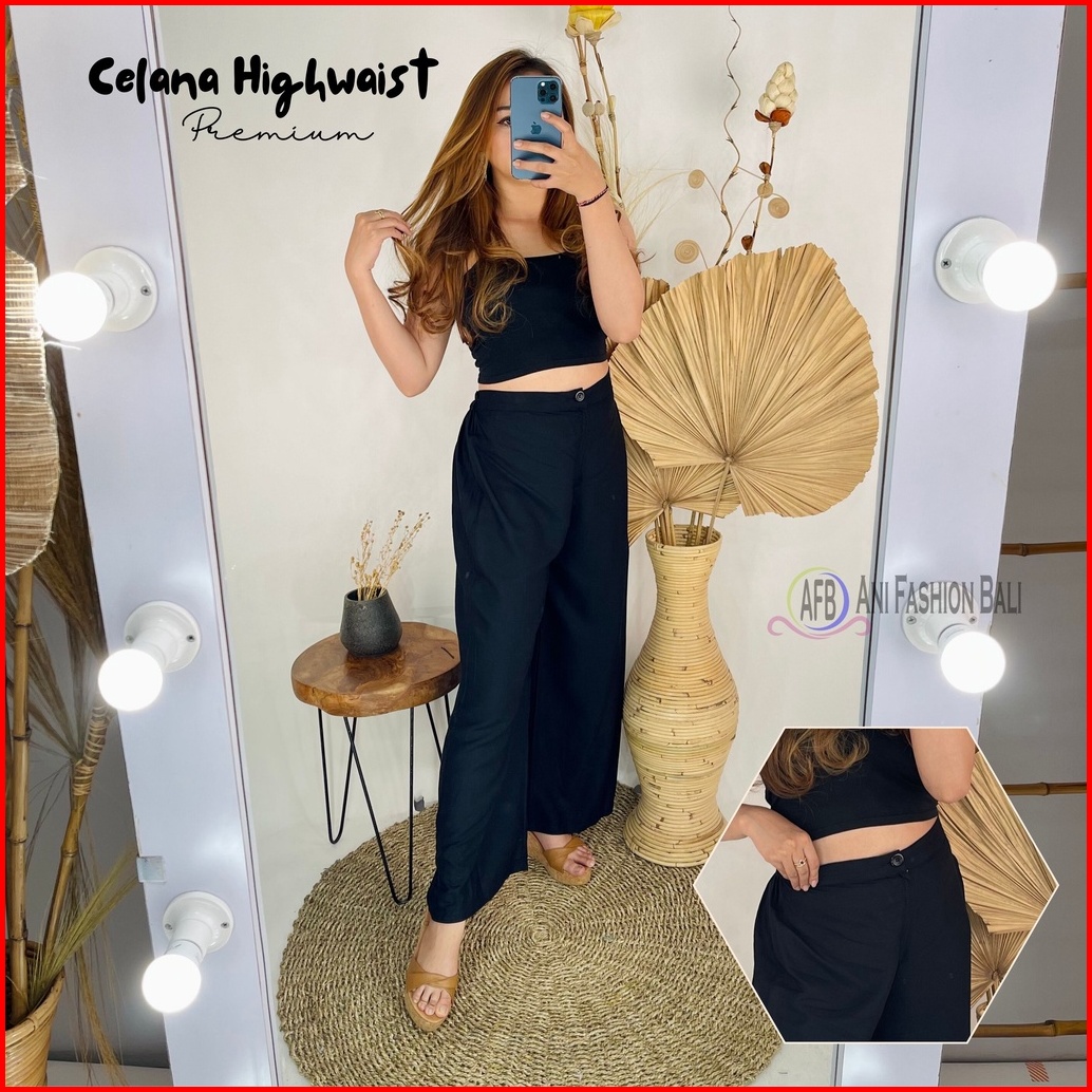 Celana Highwaist Premium Hw Kulot Kancing Resleting