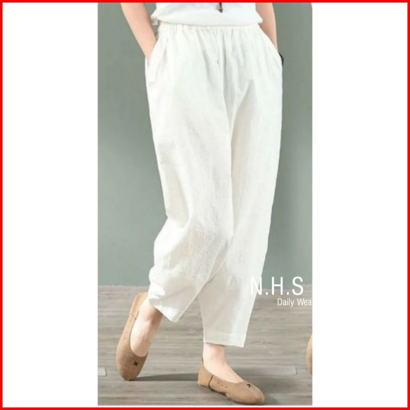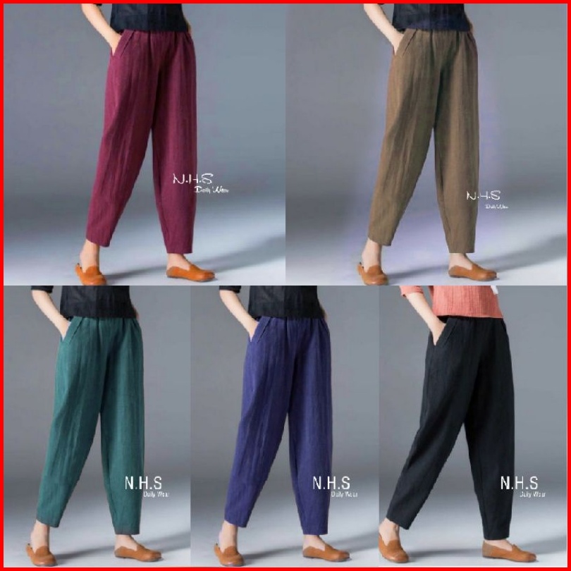 Gavier Celana Harem Casual Longgar Wanita Bahan Katun Rami Basic Trouser Linen Pants