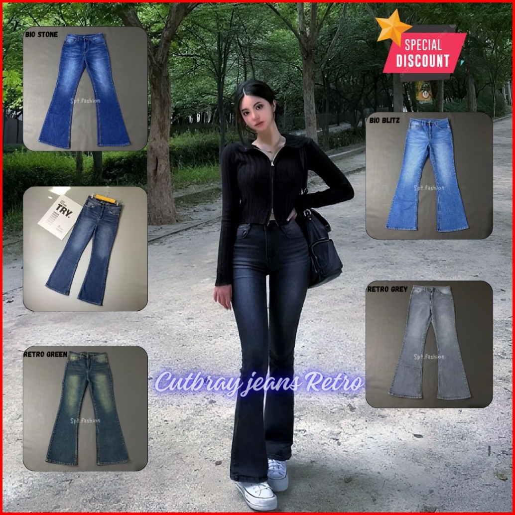 Highwaist Cutbray Jeans Retro Highwaist Stretch - Celana Jeans Cutbray Wanita Kekinian