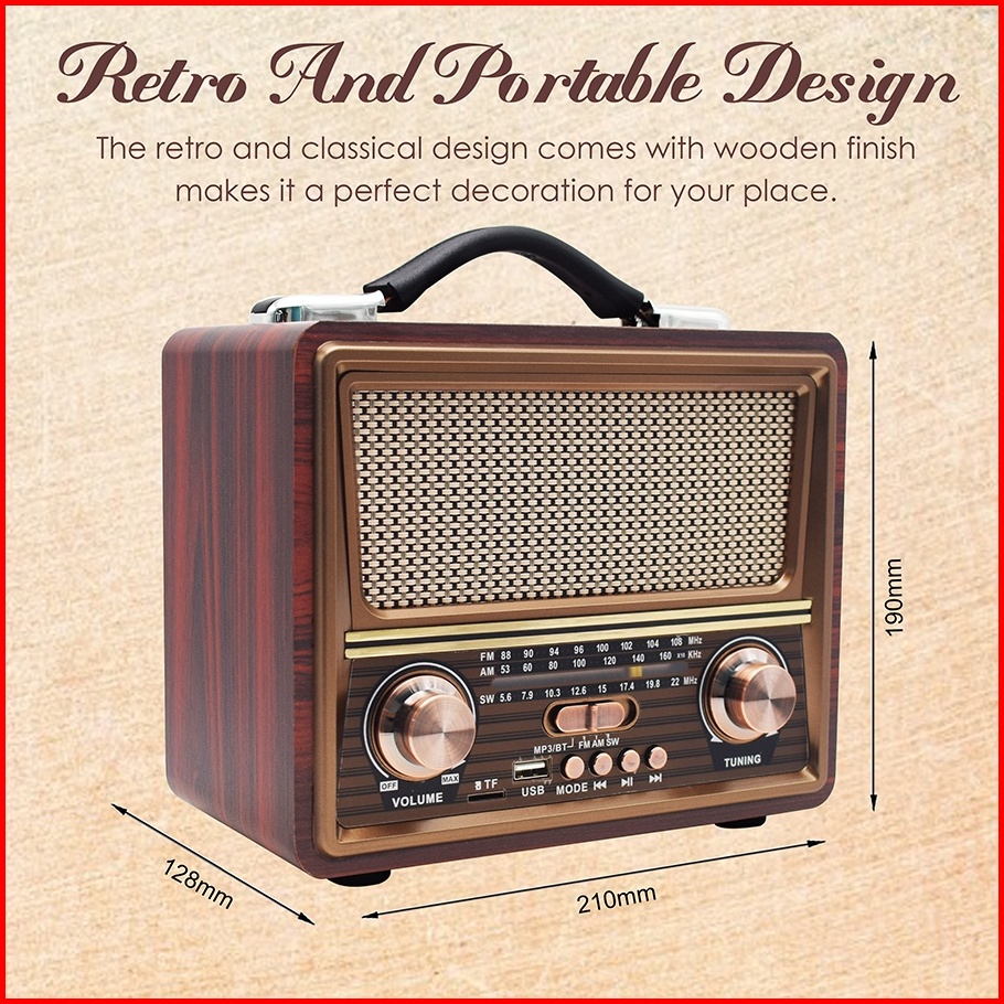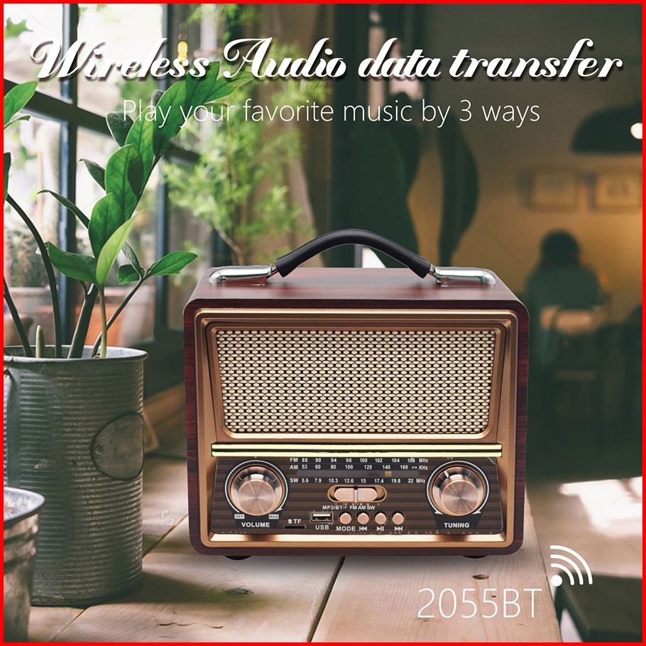 Radio Fm Am Sw Speaker Portable Bluetooth Fm Radio Wood Design Radio Bluetooth Fm Kartu Tf Usb Rd-2055bt-bk