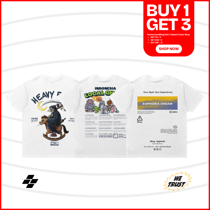 Skuy Buy 1 Get 3 - Kaos Skuy Dewasa Lengan Pendek Baju Pria Bahan Cotton Combed 24s Kerah Bulat Heavy Ride Sky303 Local