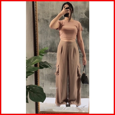 Laxmi Luneta Cargo Pants Celana Kantong Premium Rayon Highwaist