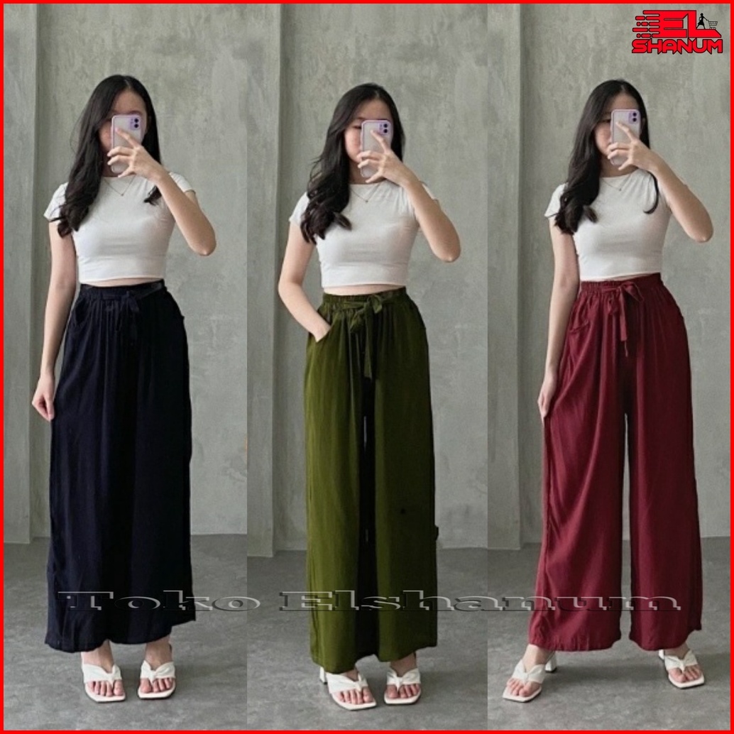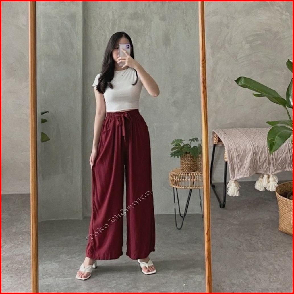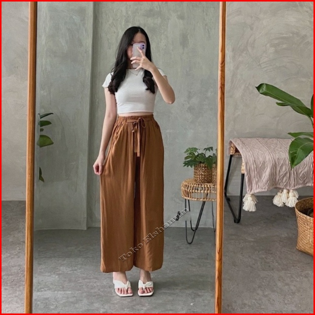 Celana Kulot Rayon Premium Highwaist Jumbo Wanita Big Size Kulot Rayon Polos Murah