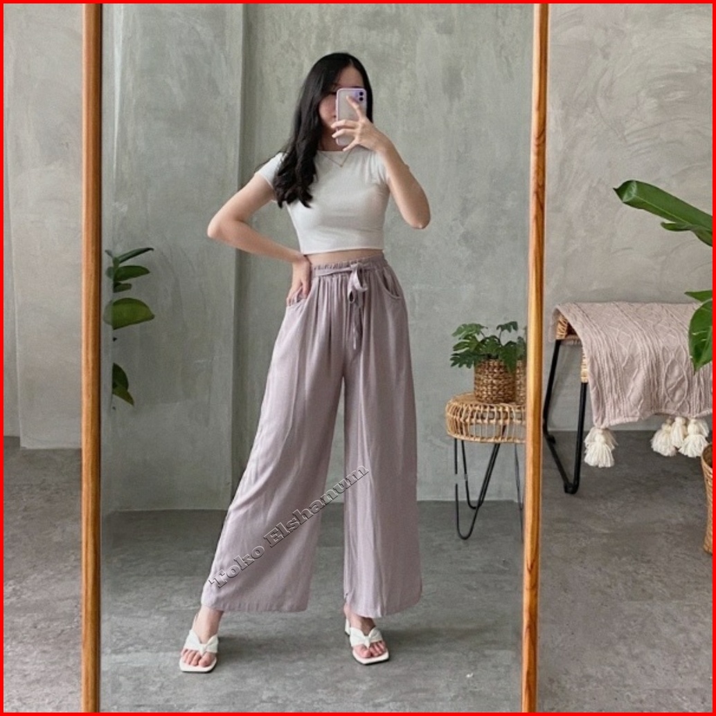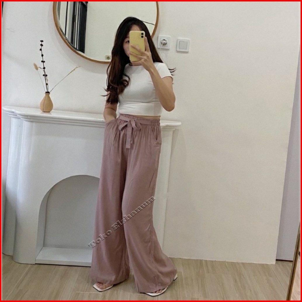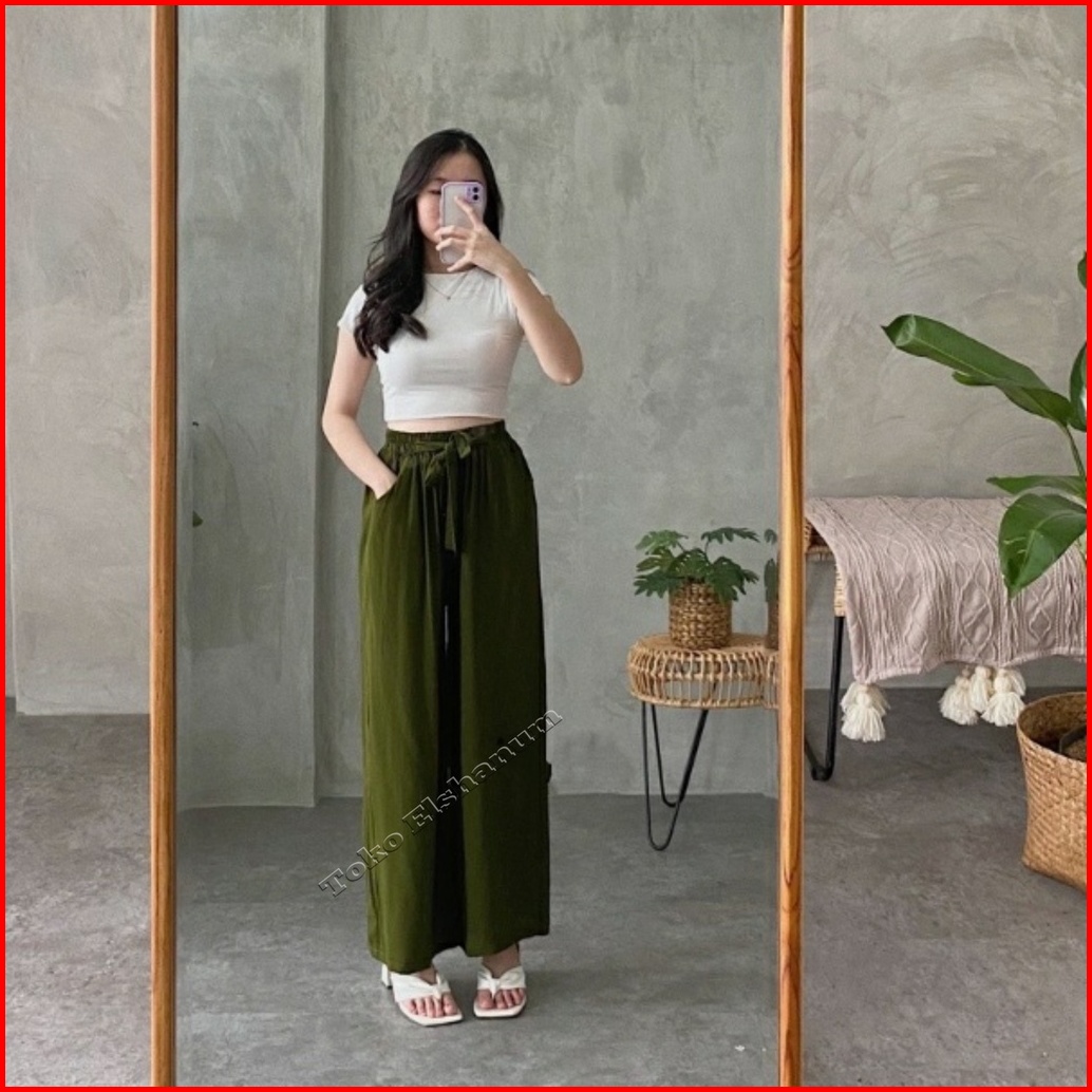 Celana Kulot Rayon Premium Highwaist Jumbo Wanita Big Size Kulot Rayon Polos Murah