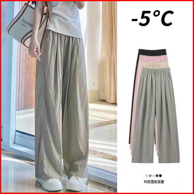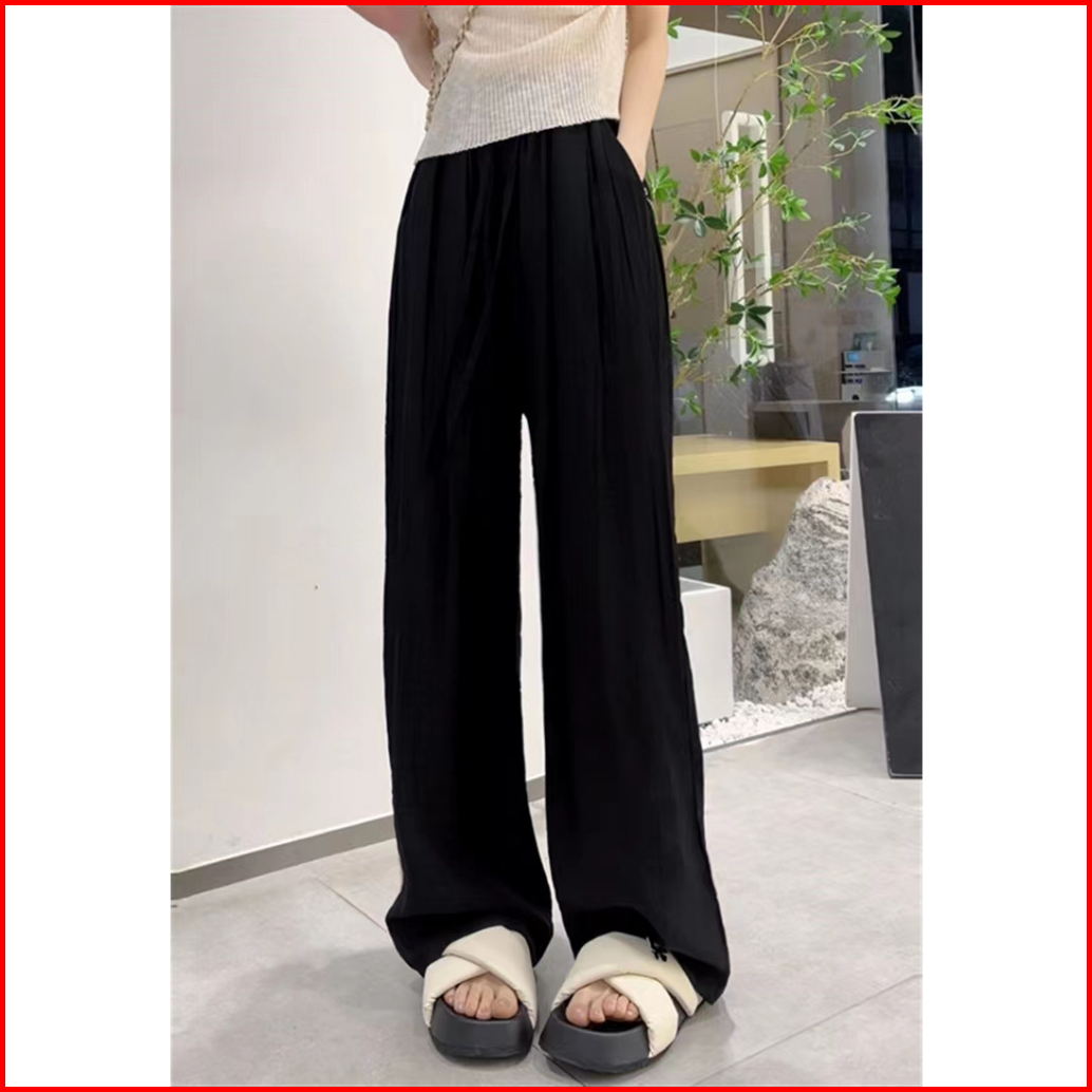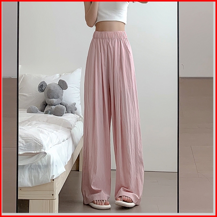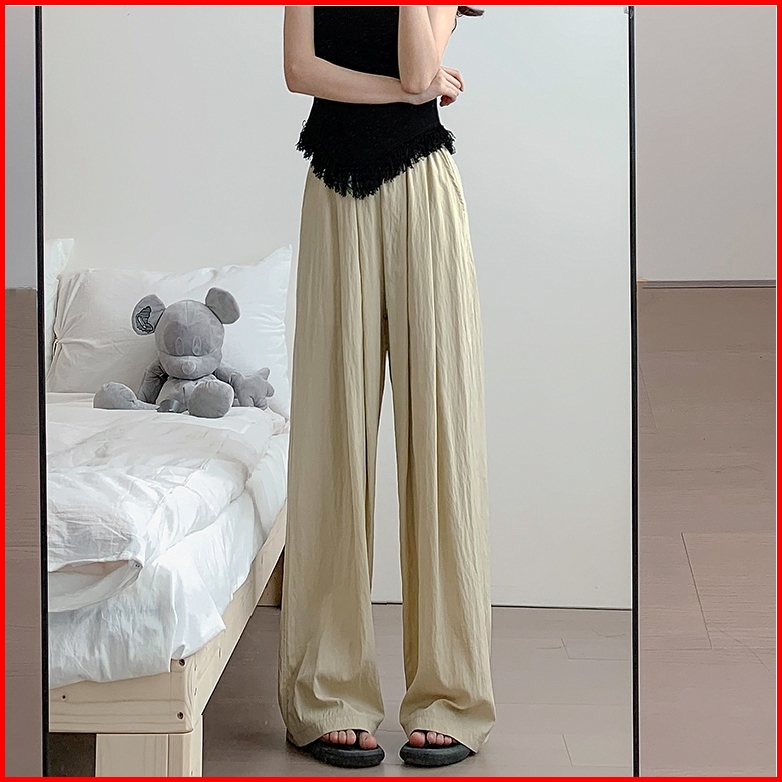 Celana Lebar Dan Kulot Kasual Berlipit Ramping Lurus Longgar Pinggang Tinggi Wanita