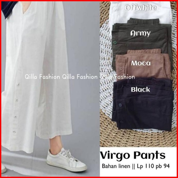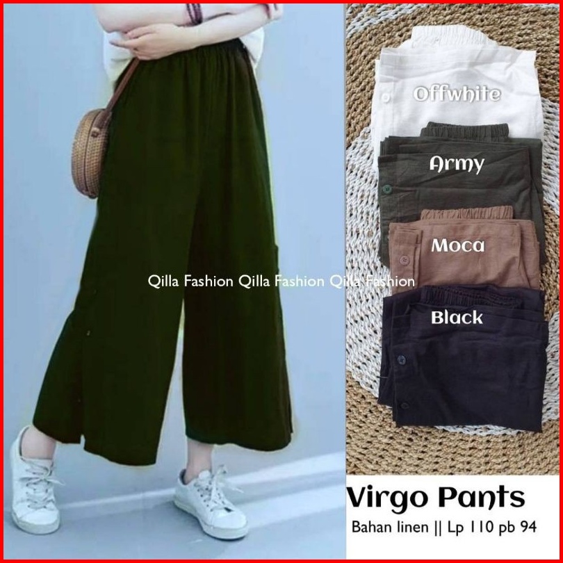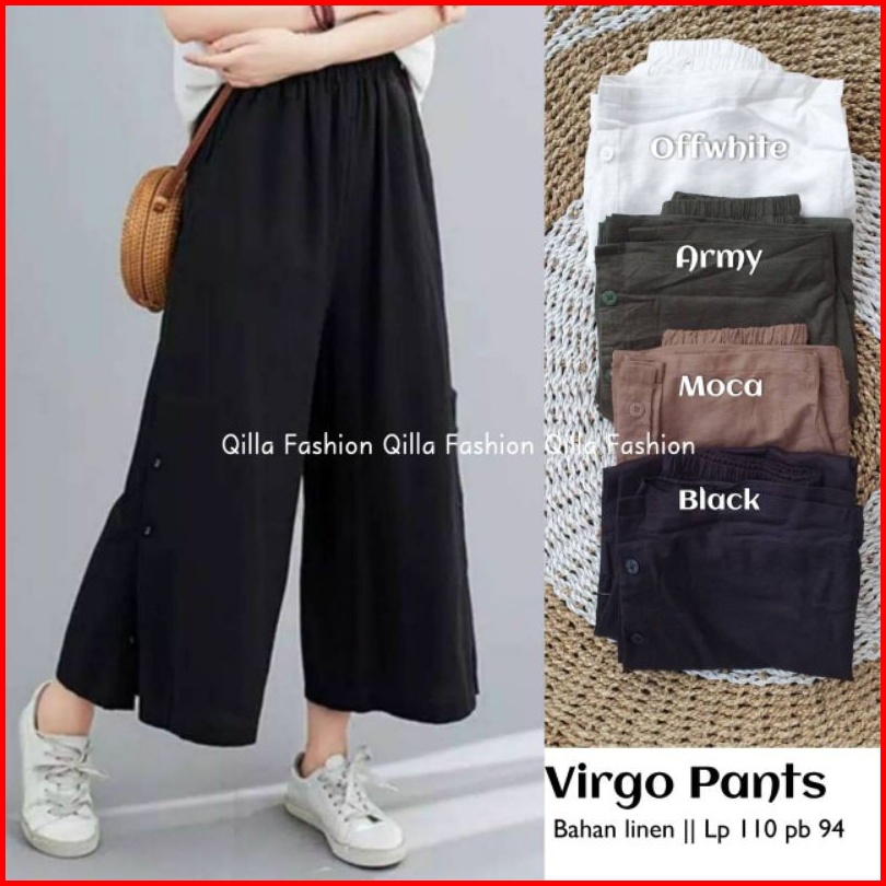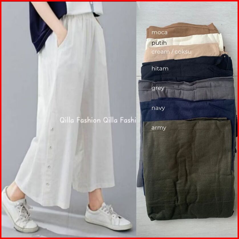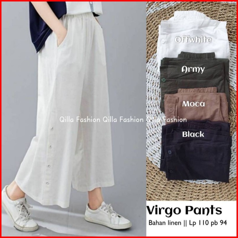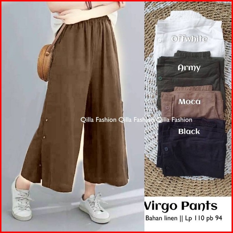 Virgo Pants Terbaru.. - Kulot Linen Rami Kancing Bawah - Celana Panjang Wanita Potongan Longgar