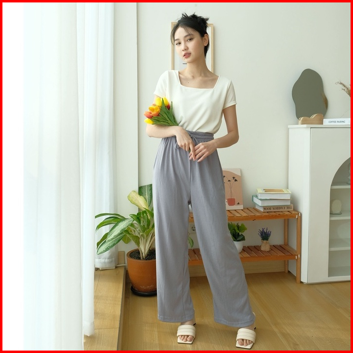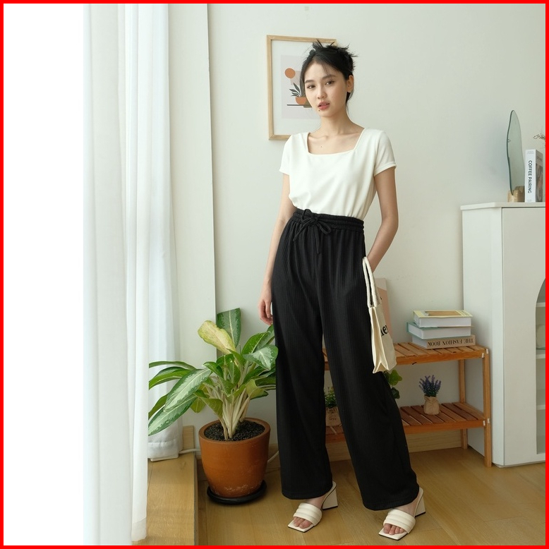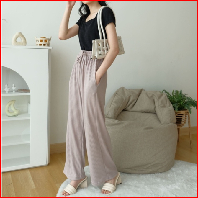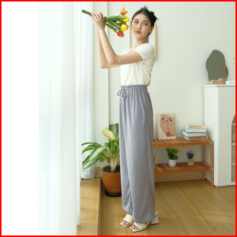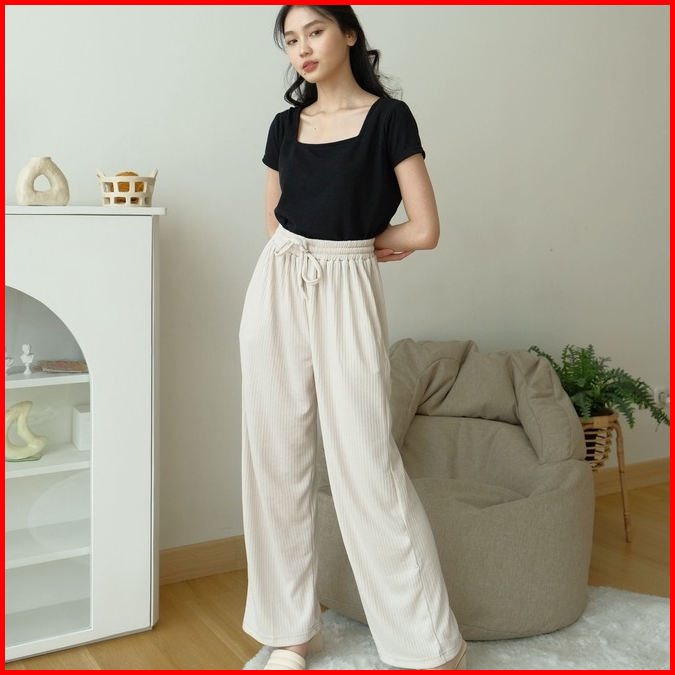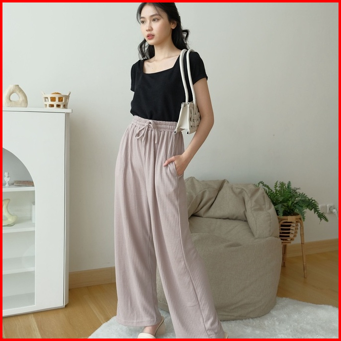 Kaorithelabel Hyori Knit Pants Rib Pants - Celana Panjang Rajut Wanita - Celana Anti Kusut - Celana Korea Wanita - Celan