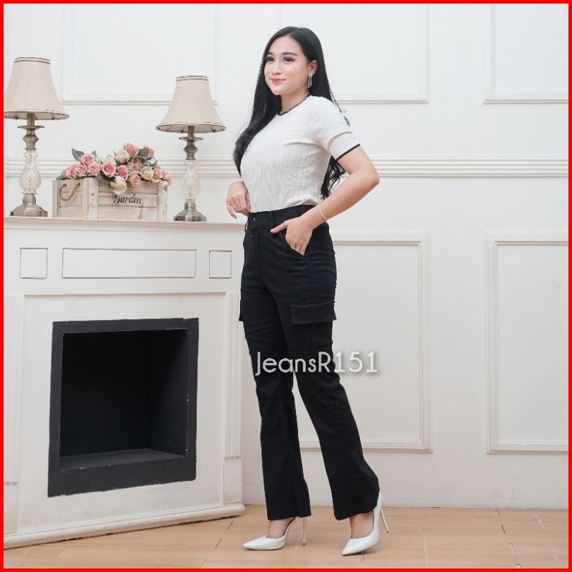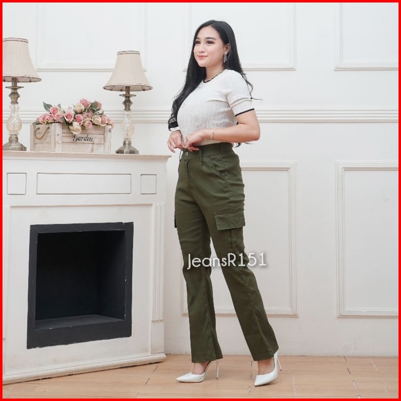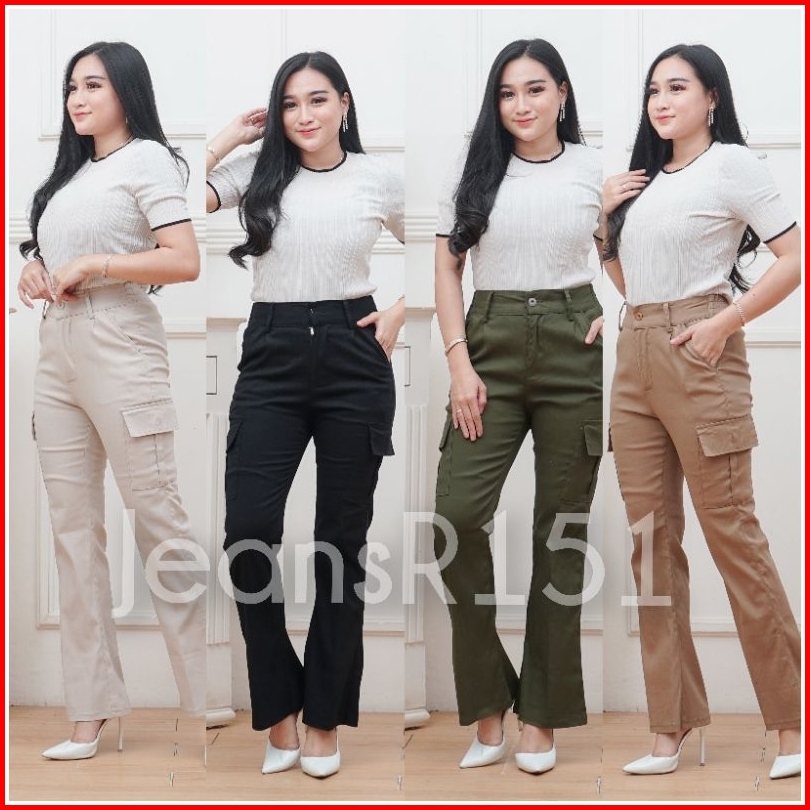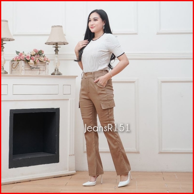 Celana Cargo Cutbray Stretch Highwaist Combed Big Size Jumbo L-xxl