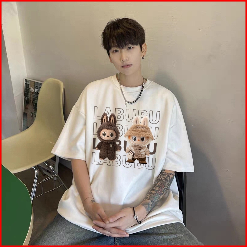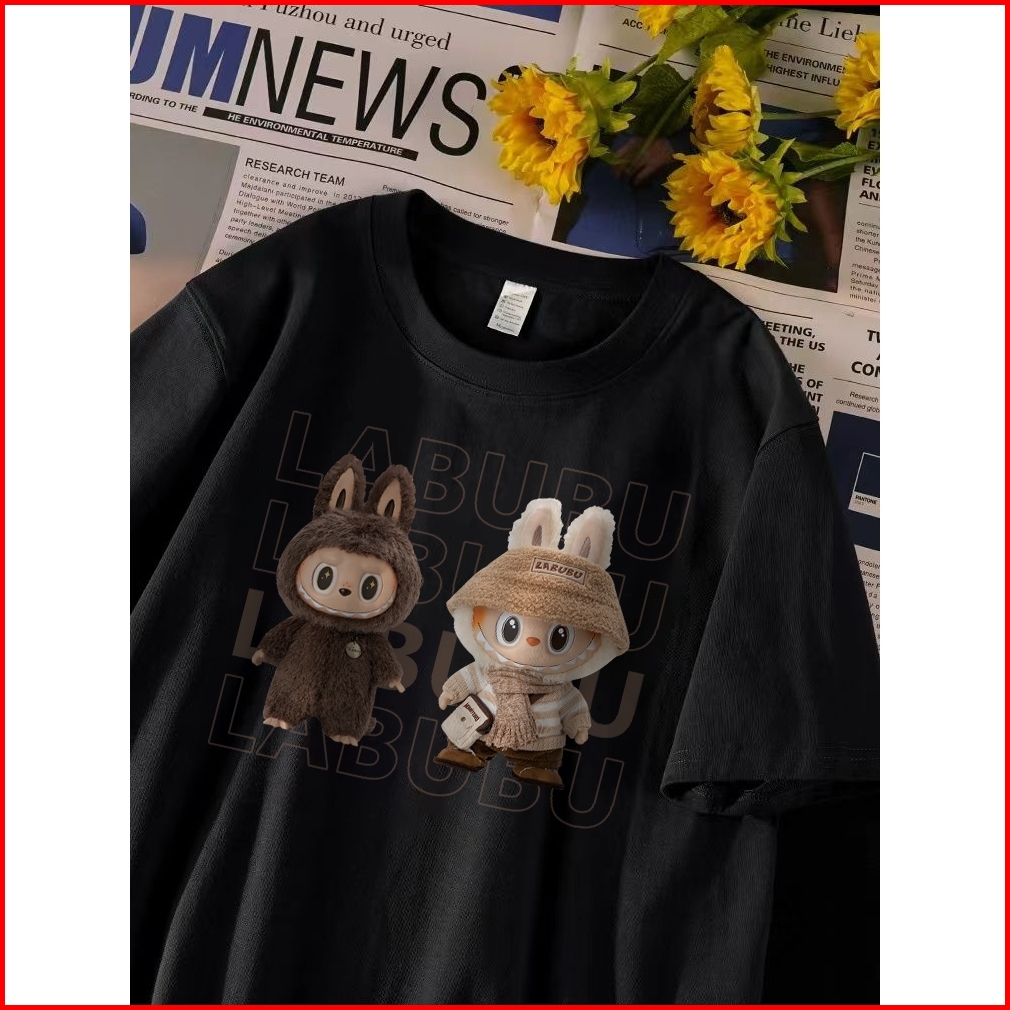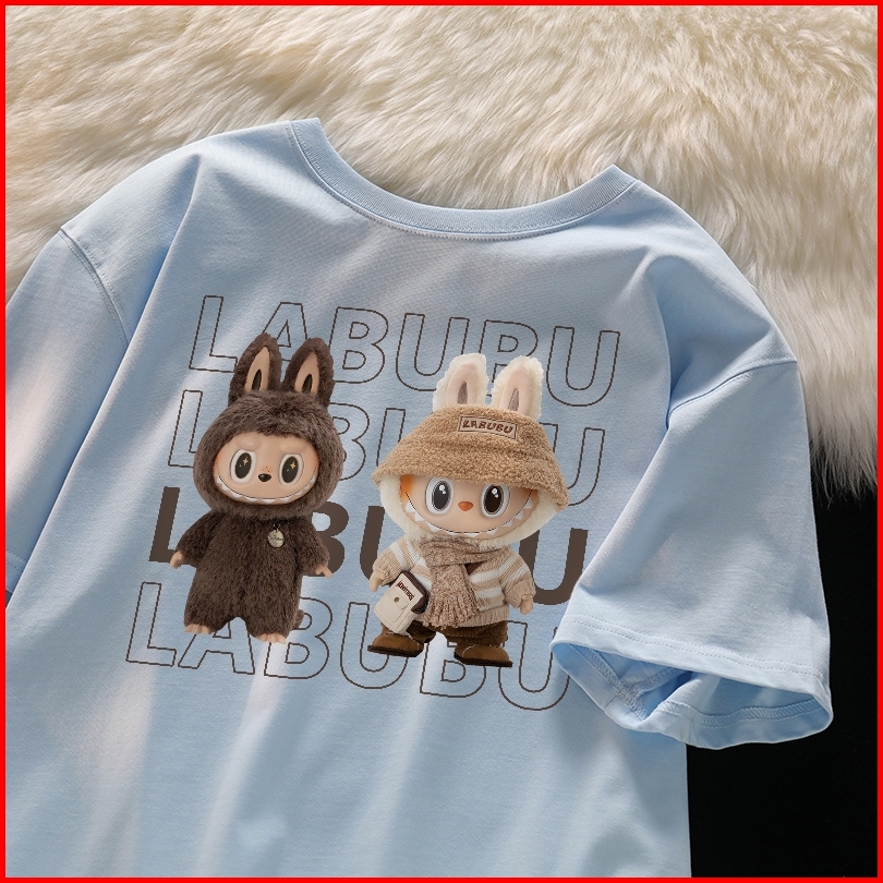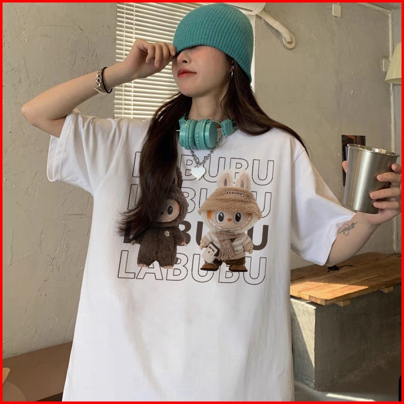 Forteid T-shirt Short Sleeve Baju Kaos Oversize Baju Korean Women S T-shirt Atasan Wanita Terbaru Cetakan Labubu Cotton