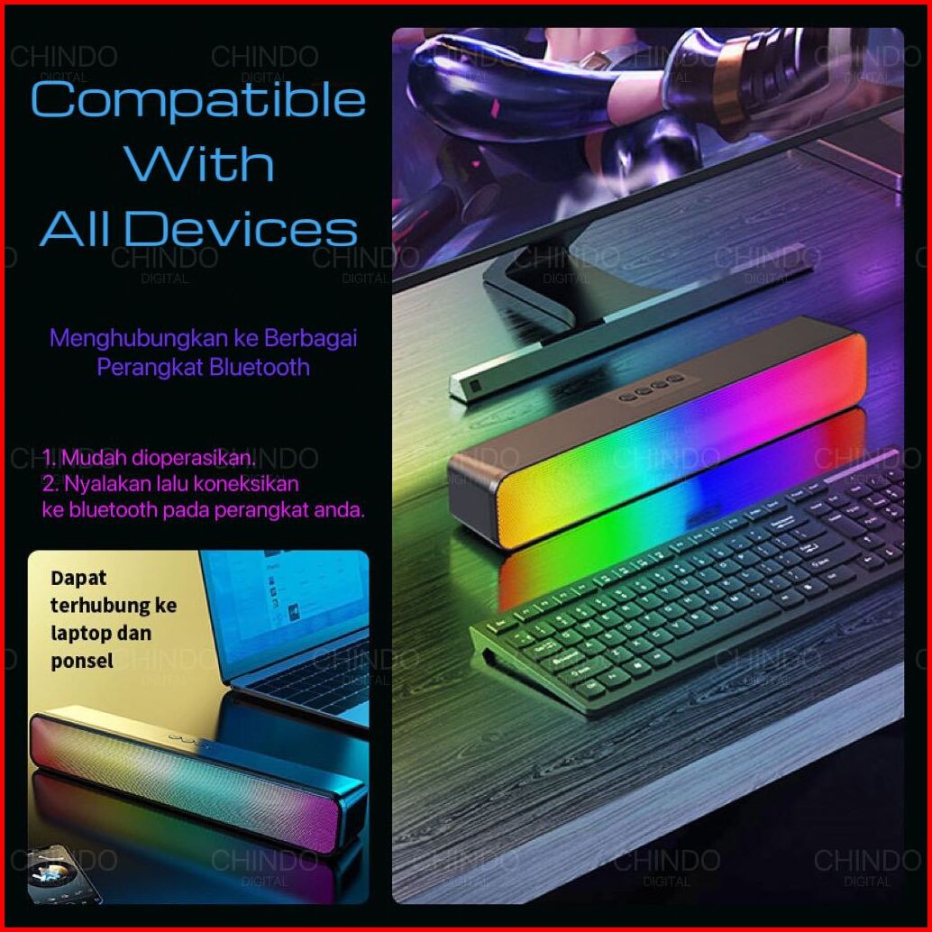 Cid19 Speaker Bluetooth Powerful Bass Stereo Long Rgb Lampu Led Speaker Soundbar Tv Computer Rgb