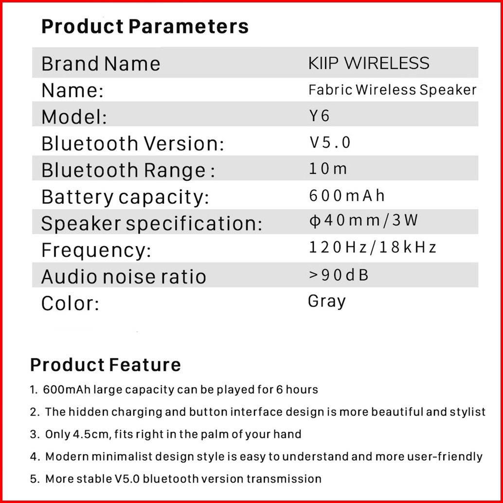 Kiip Speaker Y6 Round Bluetooth Wireless Speaker Portable