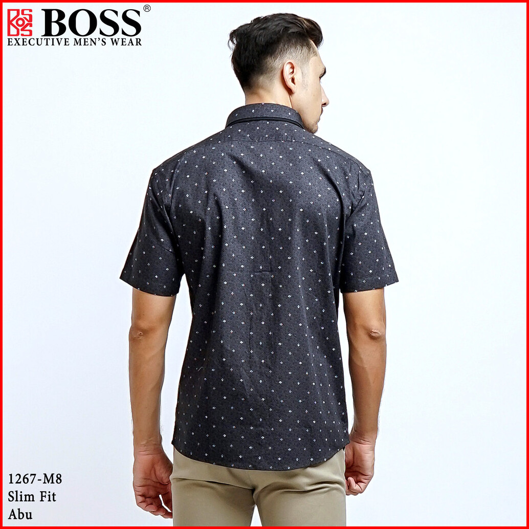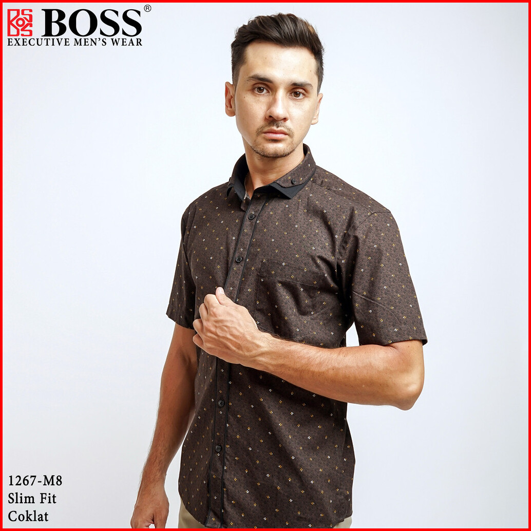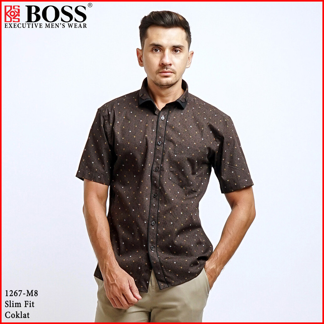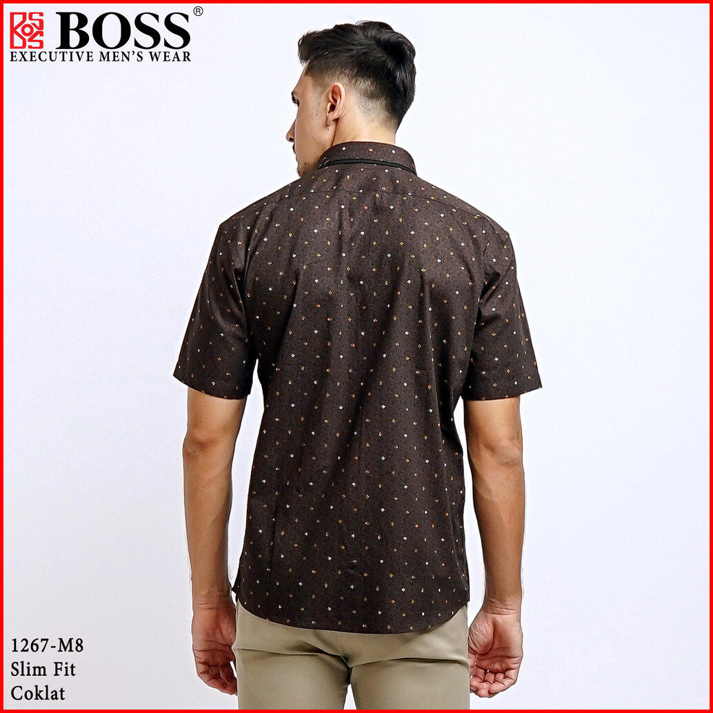 Boss Kemeja Motif Pria Lengan Pendek Slim Fit 1267