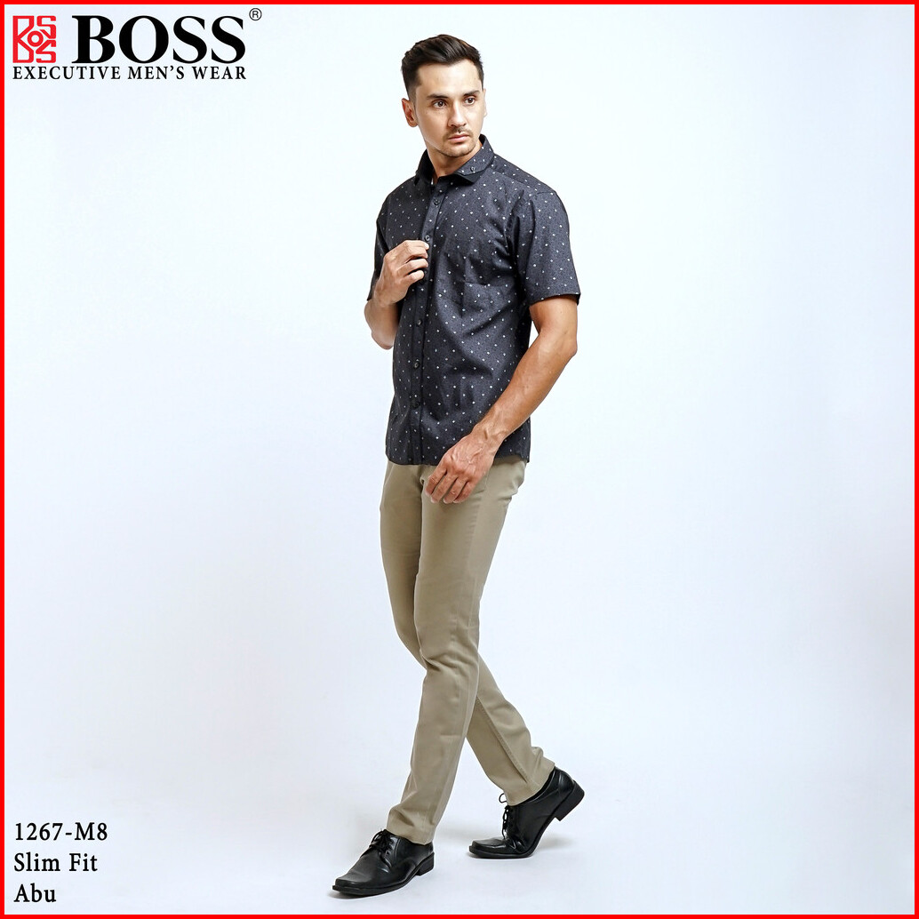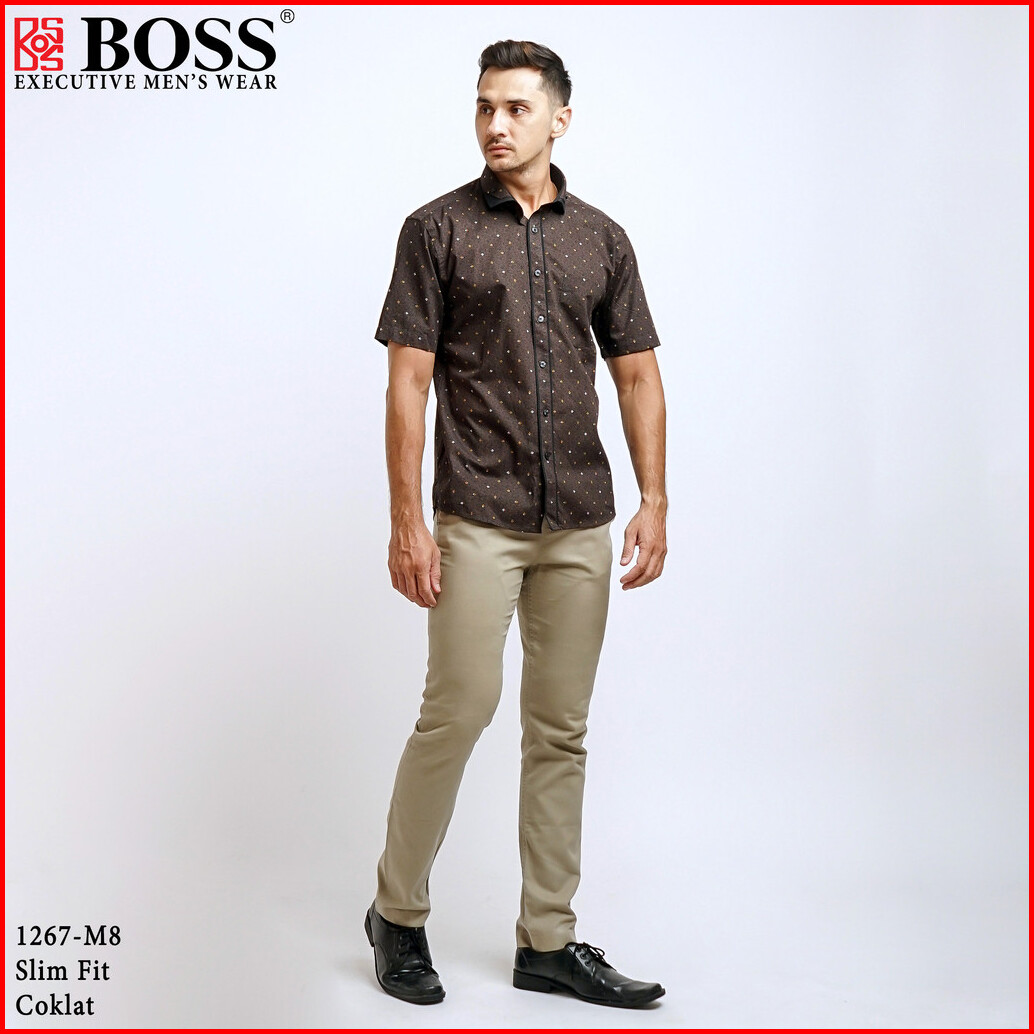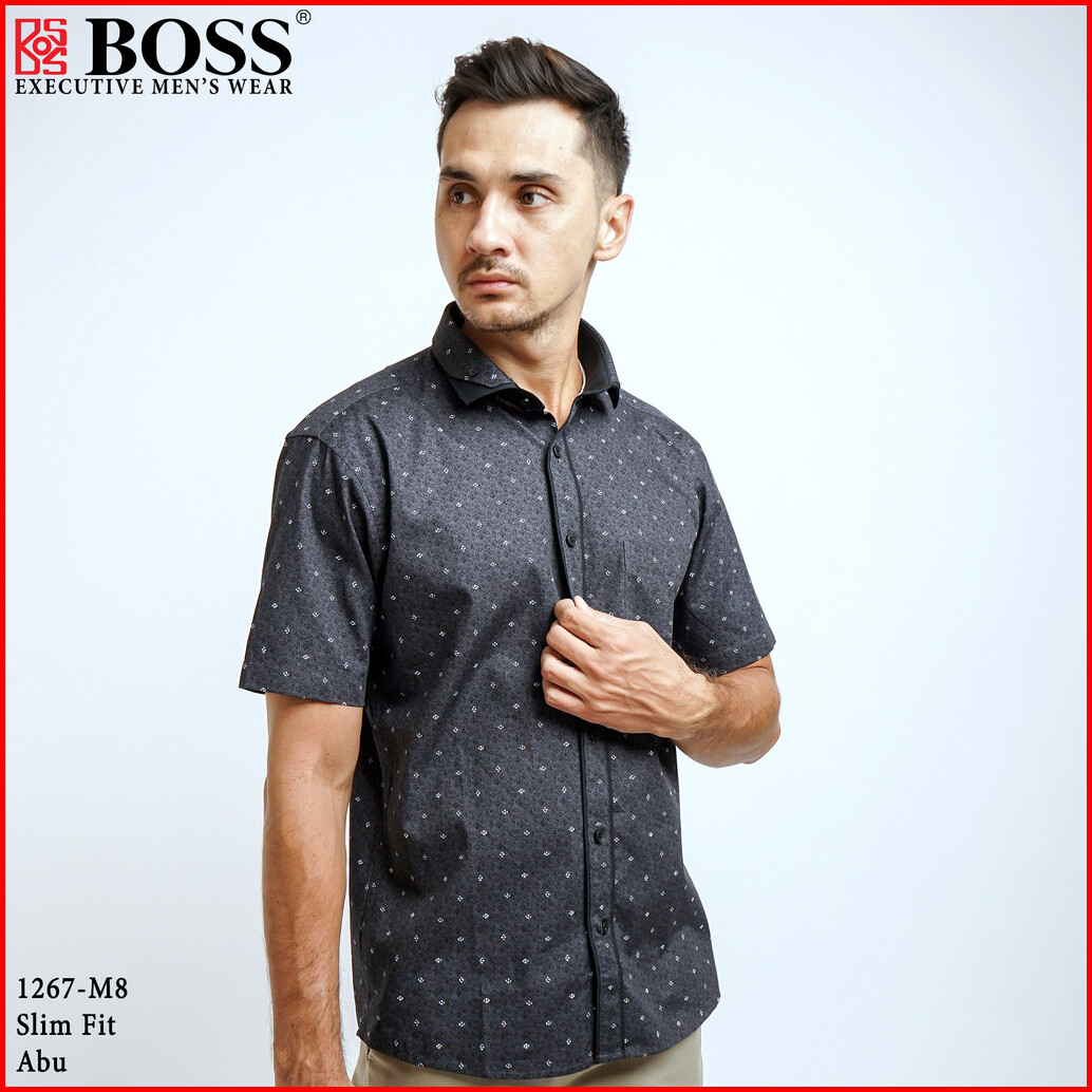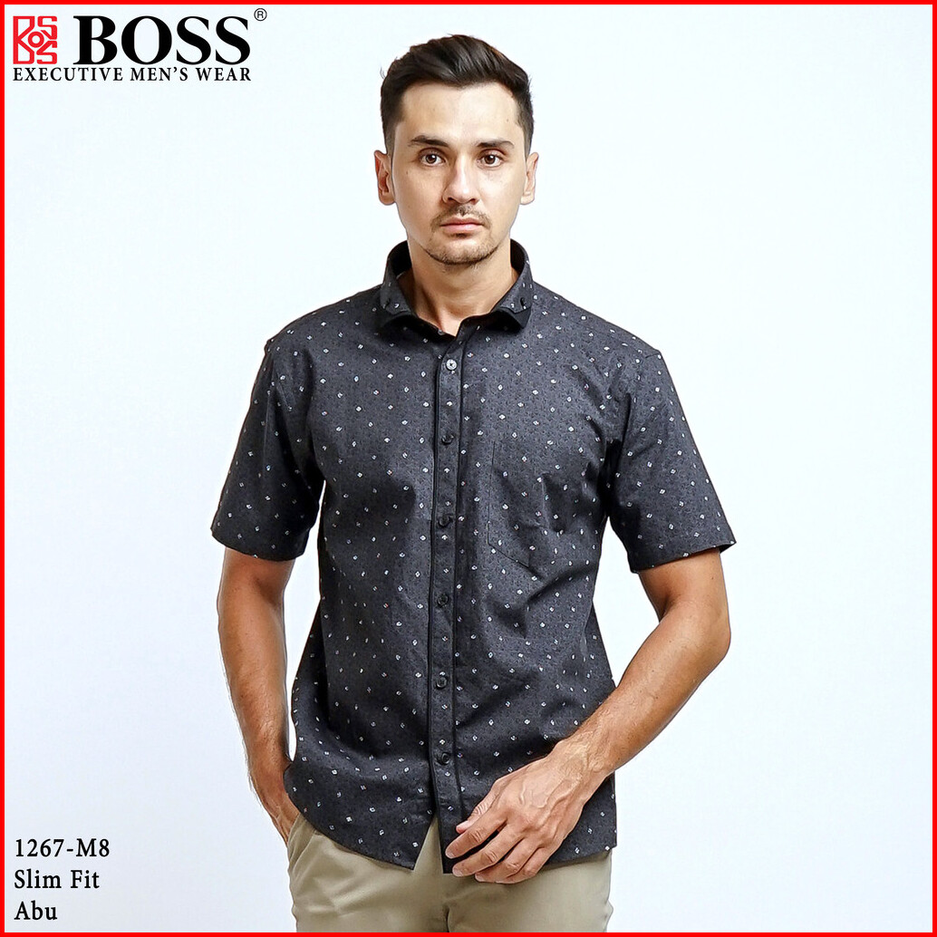 Boss Kemeja Motif Pria Lengan Pendek Slim Fit 1267