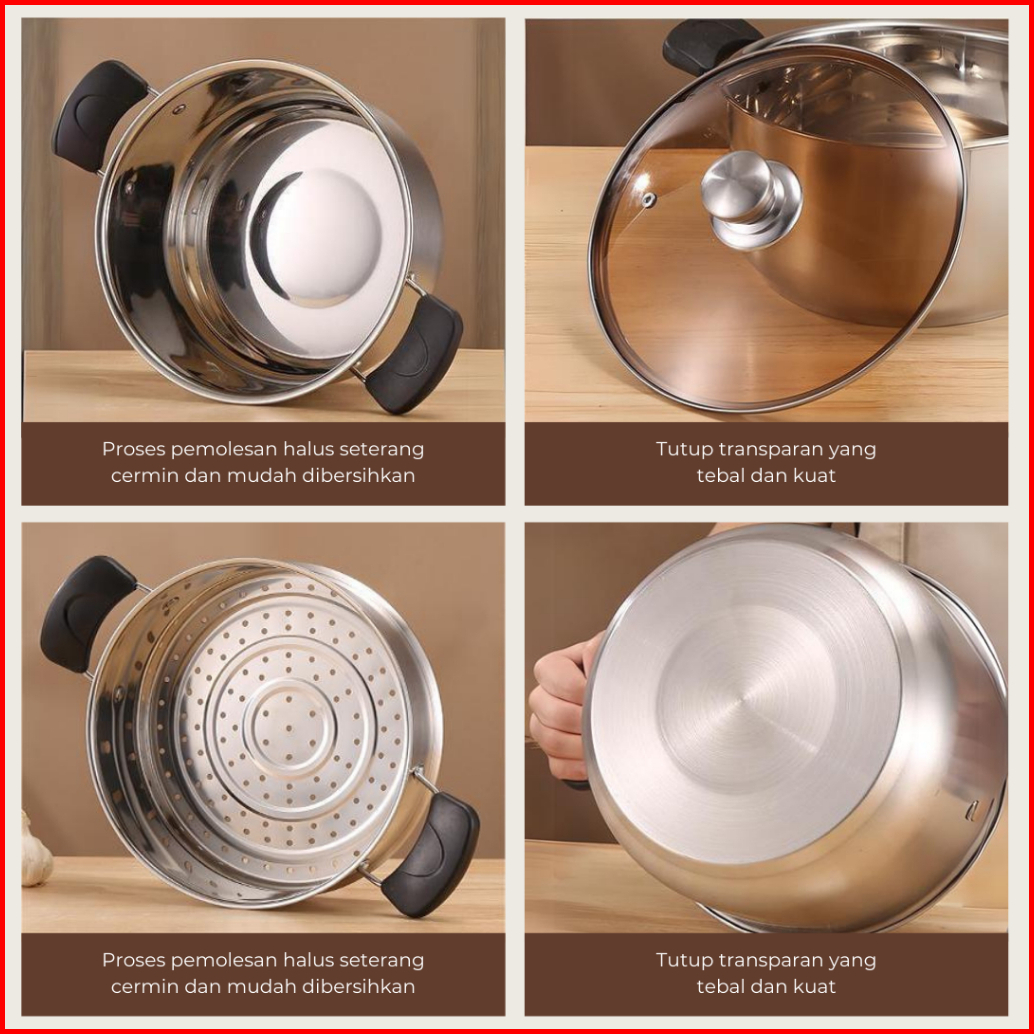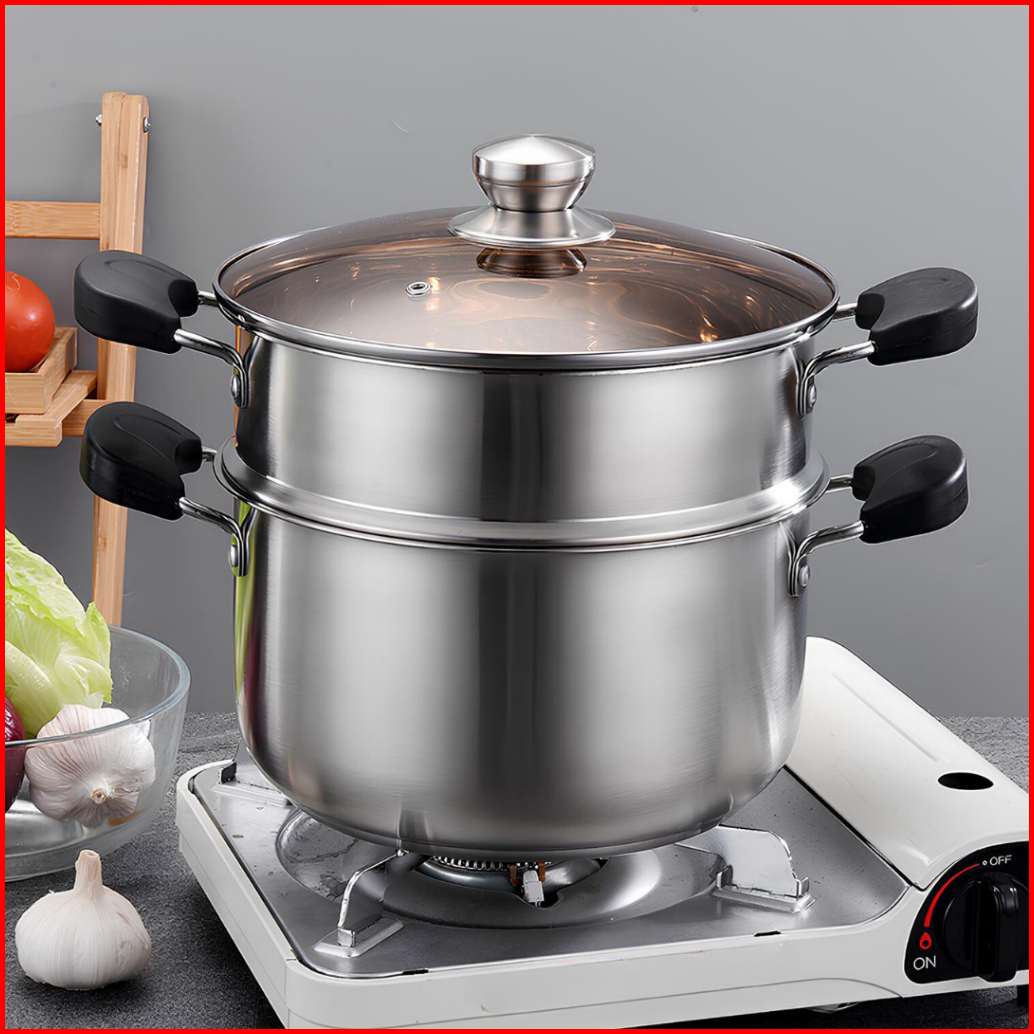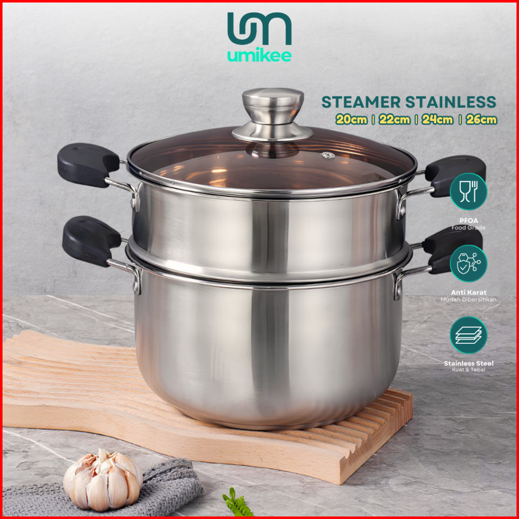 Umikee Steamer 2 Tingkat Non Stick Panci Kukus Stainless Steel Anti Lengket Tebal