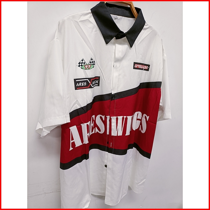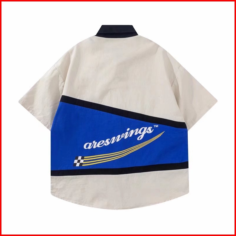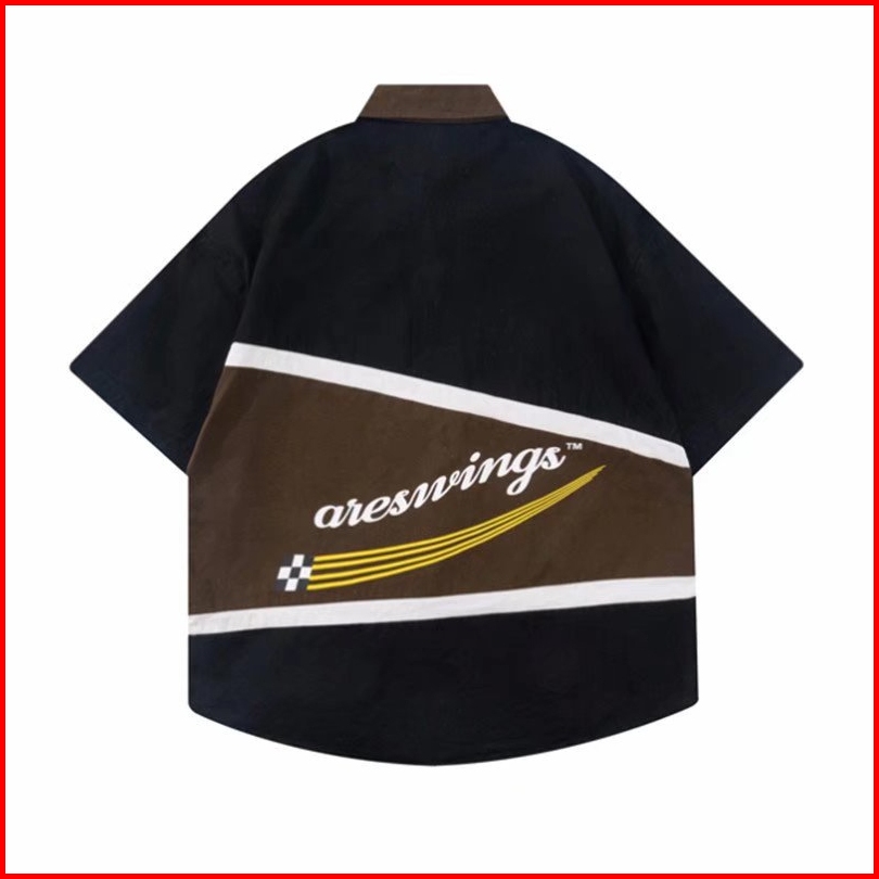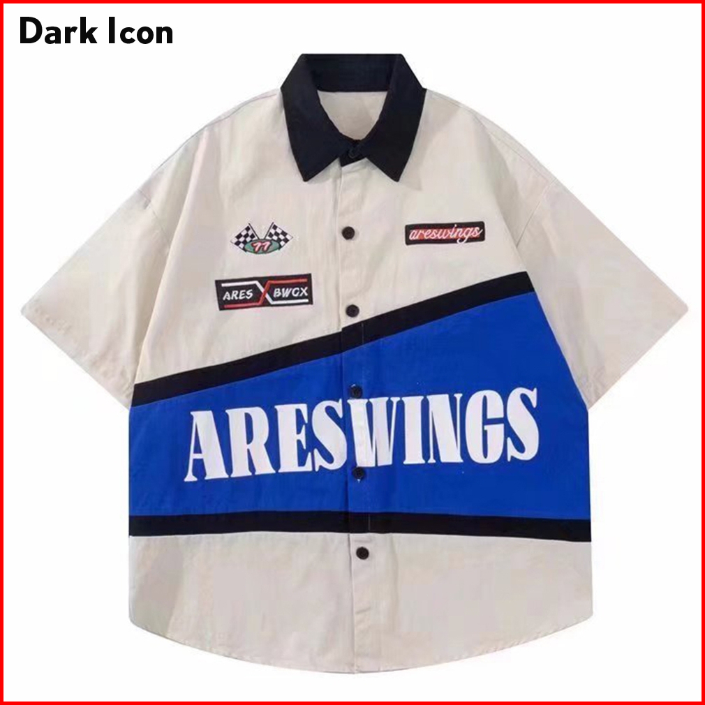 Dark Icon Patchwork Kemeja Cowok Motif Lengan Pendek Turn-down Collar Vintage Shirts Men