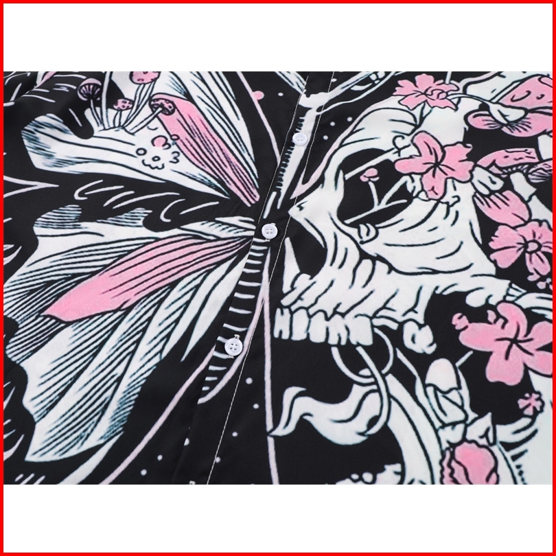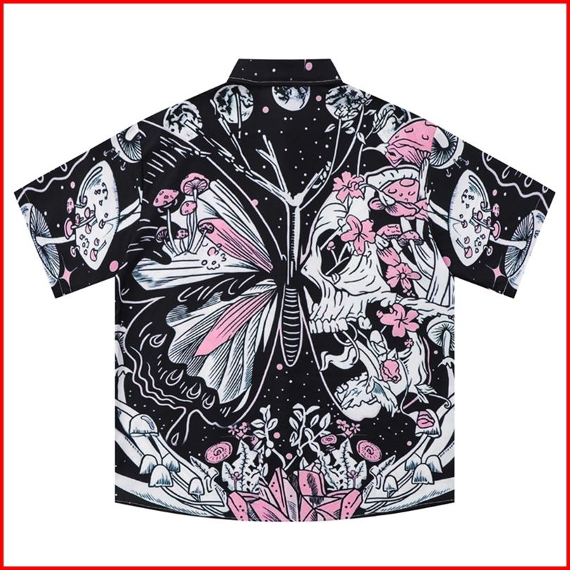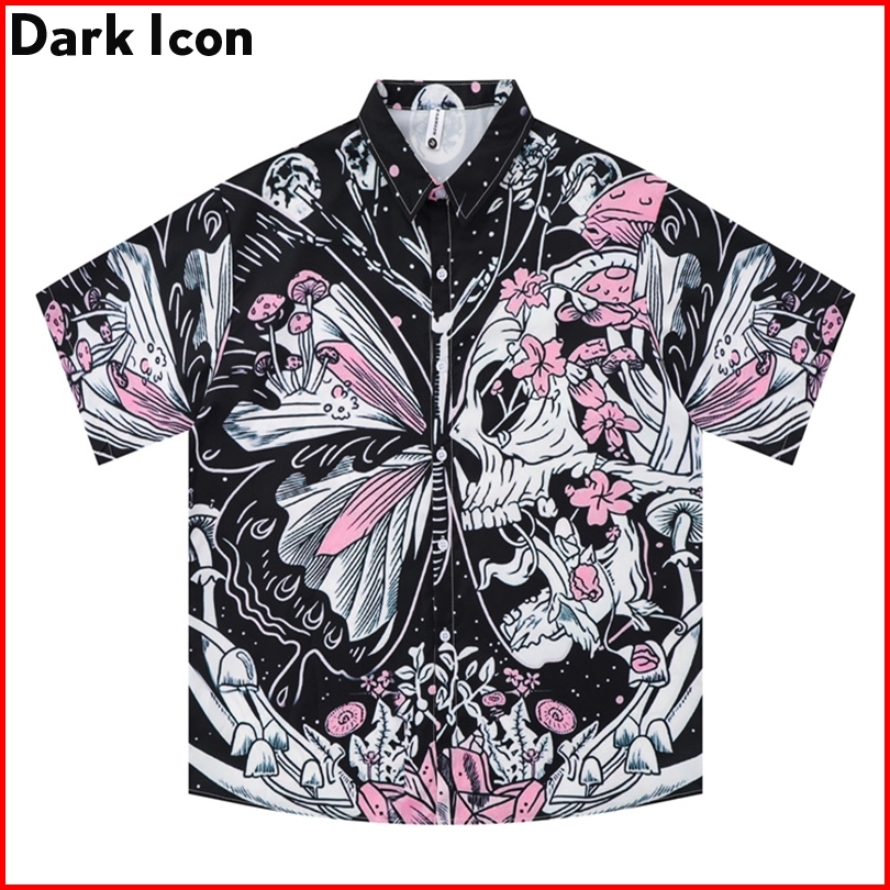 Dark Icon Full Print Baju Kemeja Pria Butterfly Atasan Kemeja Cowok Motif Lengan Pendek