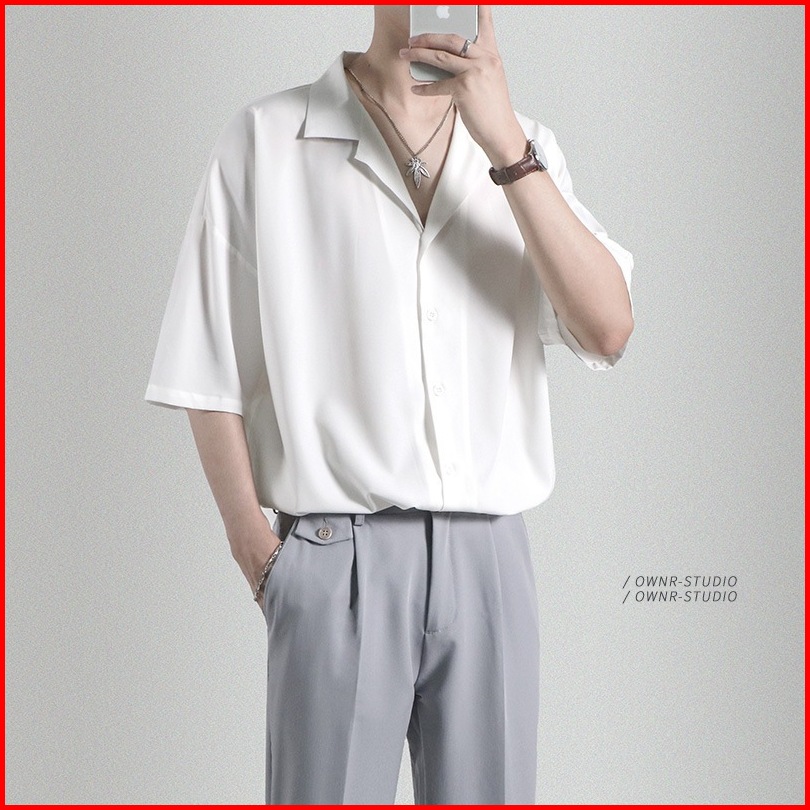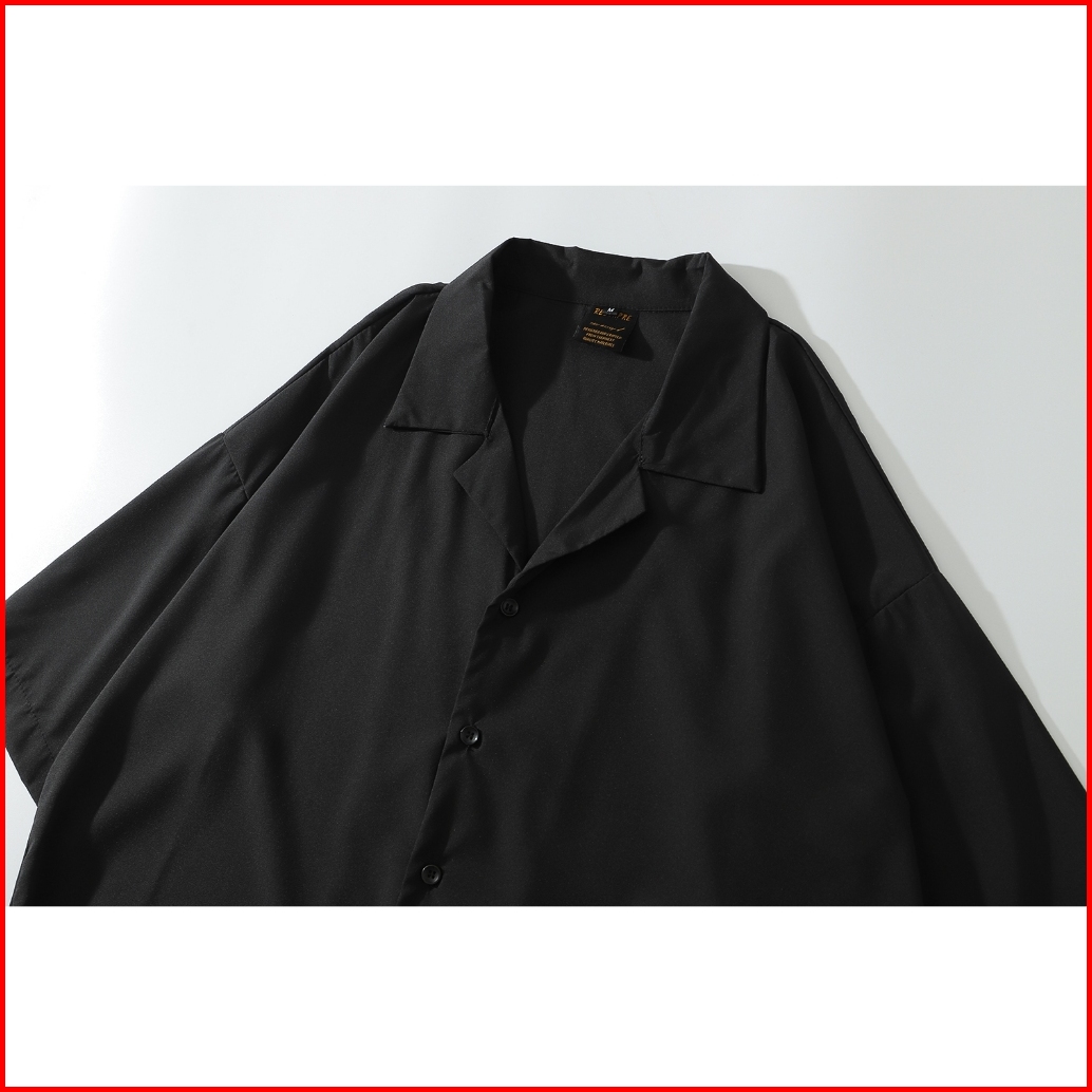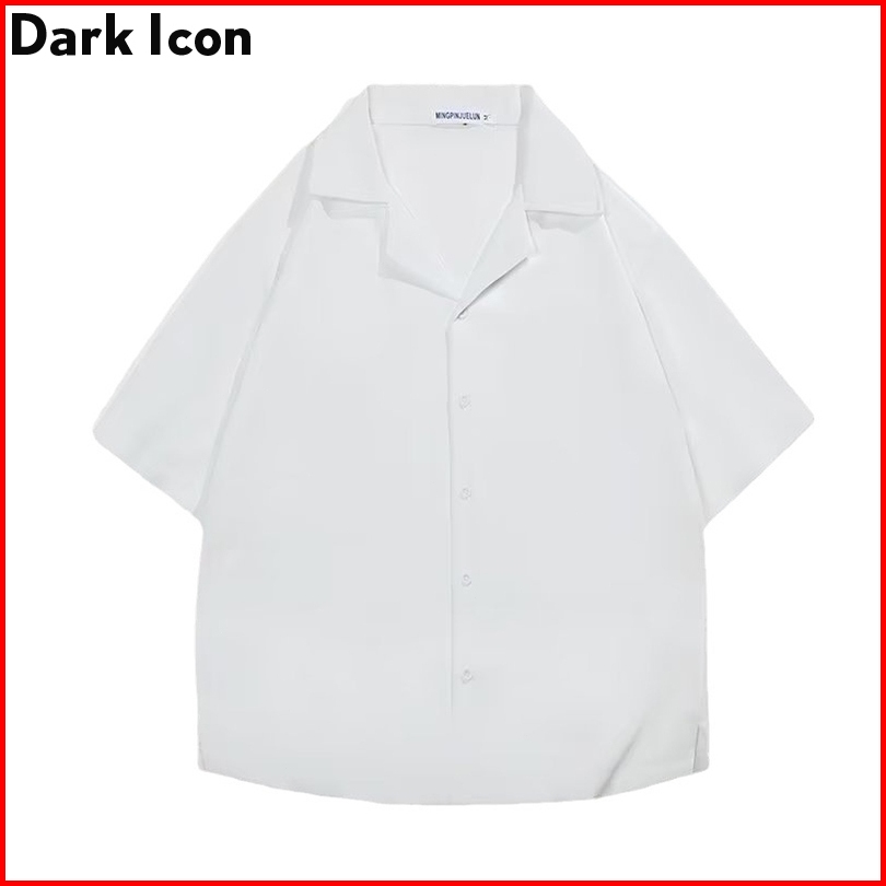 Dark Icon Kemeja Oversize Pria Plain Vintage Shirts Men Kemeja Cowok Korean Style Lengan Pendek Baju Pria Hitam Putih