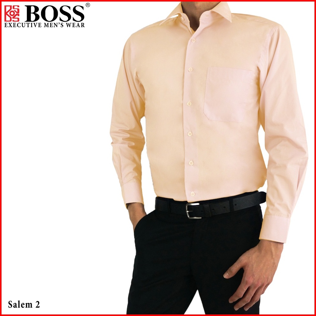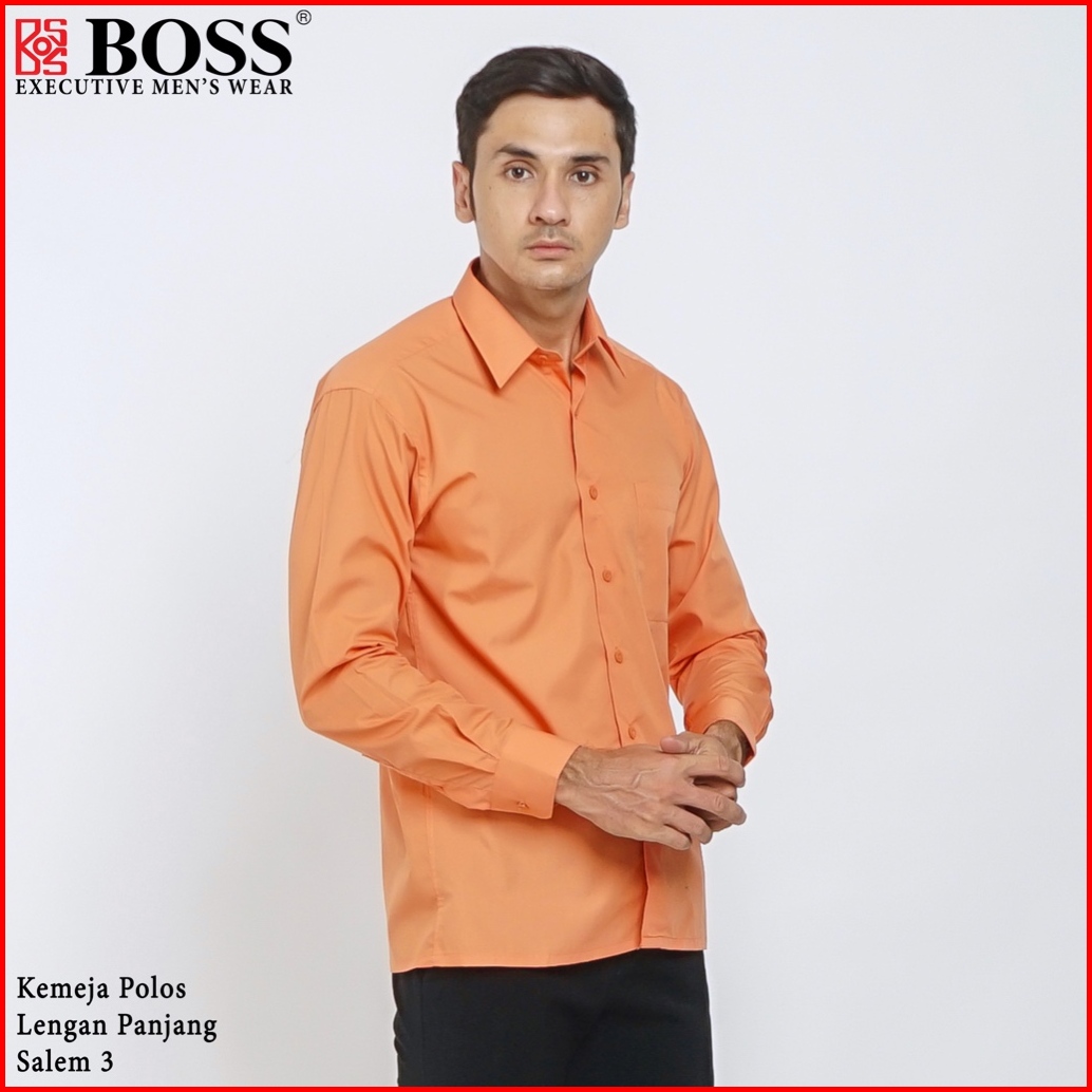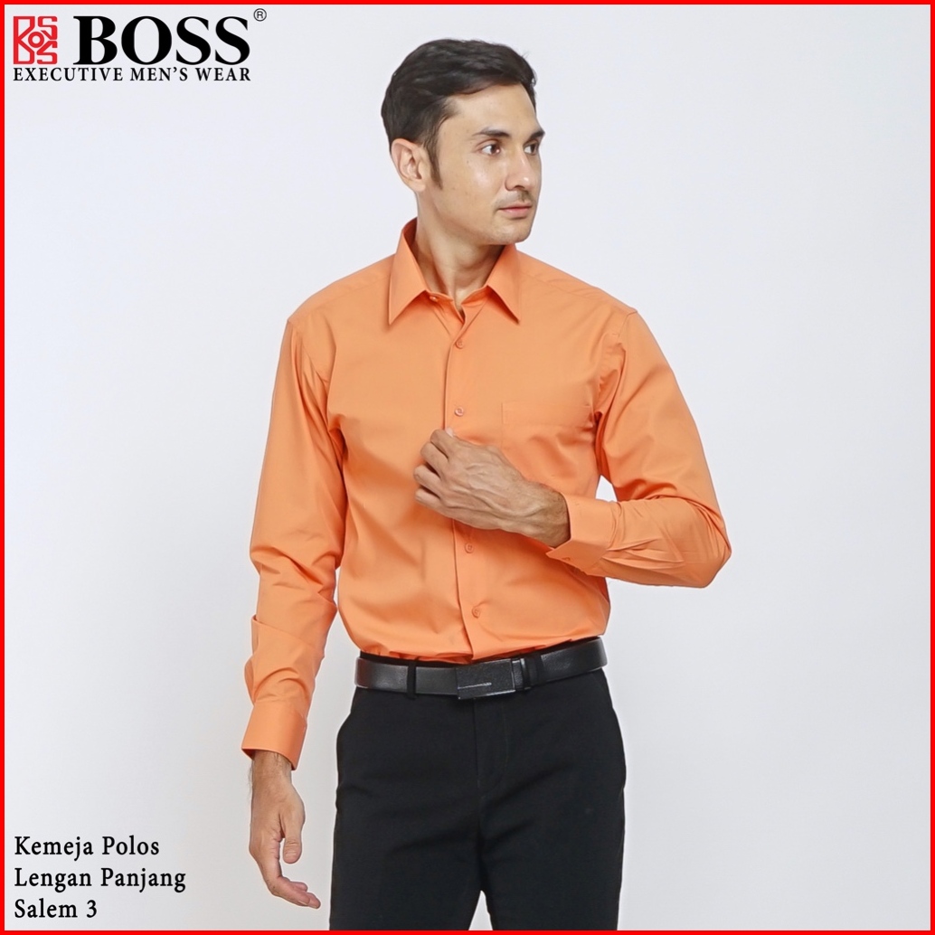 Boss Kemeja Polos Pria Lengan Panjang Regular Fit Salem Orange